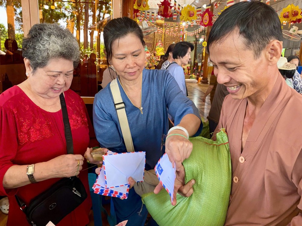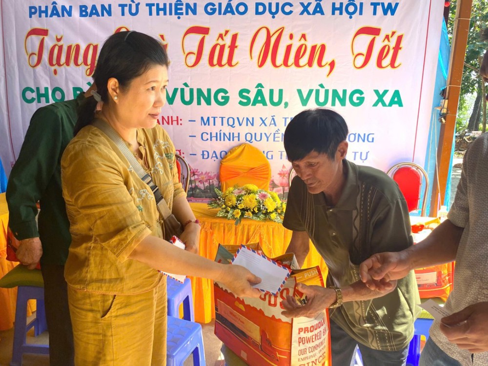 Trên tinh thần từ bi cứu khổ, ban vui của người con Phật, quý Phật tử và các mạnh thường quân gần xa đã chung tay đóng góp, mang đến những phần quà thiết thực cho bà con nghèo vùng sâu, vùng xa. Mỗi phần quà trị giá 400.000 đồng cùng 150.000 đồng tiền mặt. Tuy giá trị vật chất không lớn, nhưng đó là tấm lòng sẻ chia, sự quan tâm chân thành gửi đến bà con trong dịp Tết đến, Xuân về.