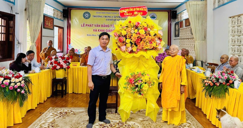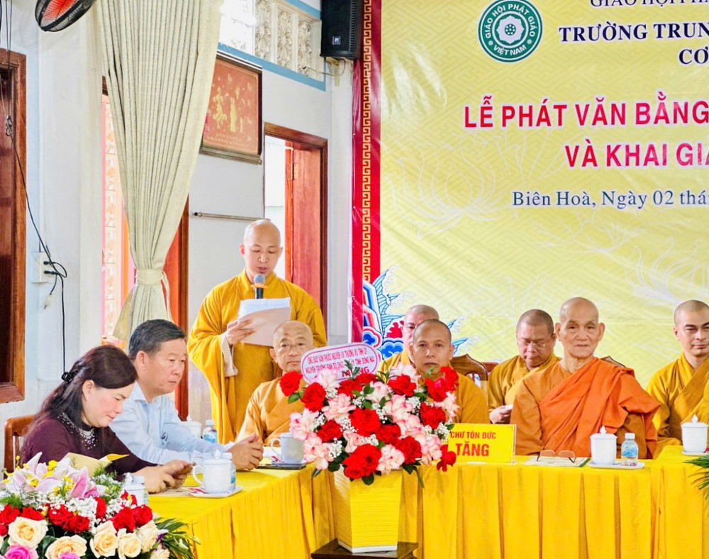 Buổi lễ được đặt dưới sự chứng minh cao quý của: Hòa thượng Thích Phước Tú, Phó Trưởng Ban Giáo dục Phật giáo Trung ương, Chứng minh BTS GHPGVN tỉnh Đồng Nai, Chứng minh Ban Giám hiệu; Thượng tọa Thích Phước Đạt, Ủy viên Thường trực HĐTS, Phó Trưởng ban Thường trực Ban Giáo dục Phật giáo Trung ương, Phó Viện trưởng Học viện PGVN tại TP.HCM; Thượng tọa Thích Minh Trì, Phó Trưởng Ban Trị sự GHPGVN tỉnh Đồng Nai; Đại đức Thích Thiện Trí, Chánh Thư ký BTS GHPGVN tỉnh, Phó Hiệu trưởng nhà trường; Đại đức Thích Huệ Thới, Phó Thư ký BTS.