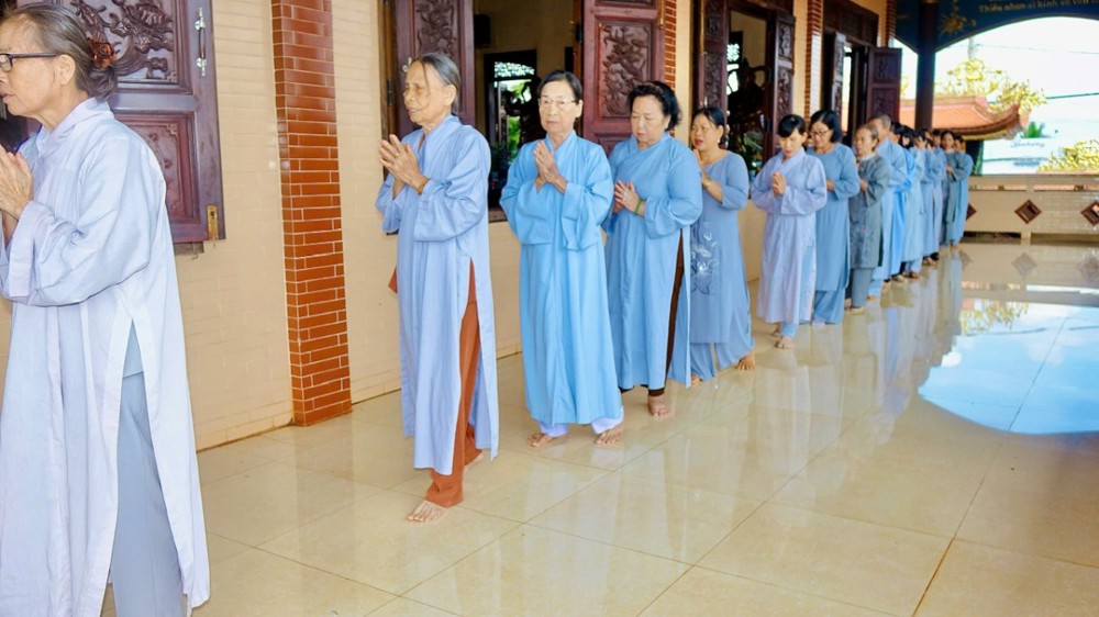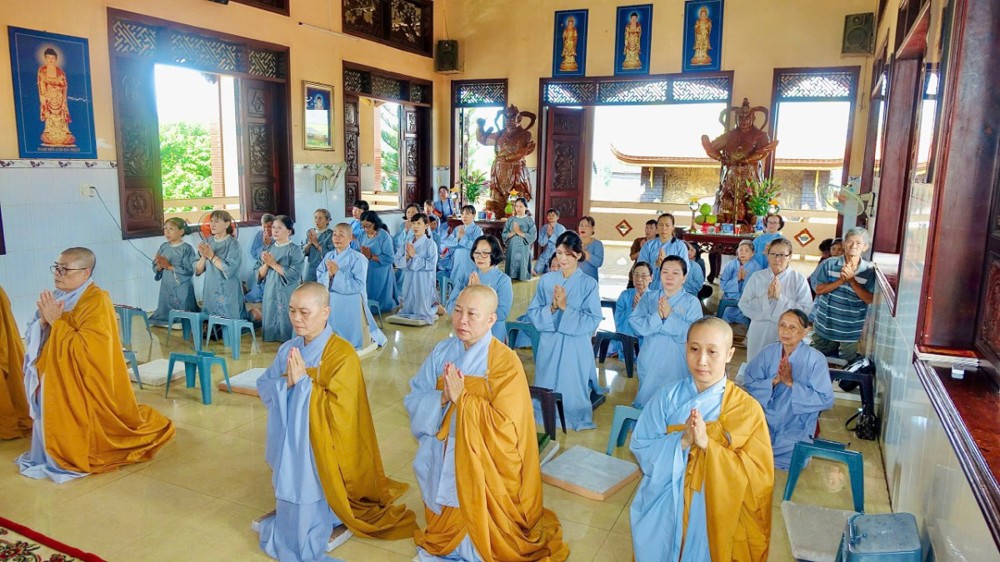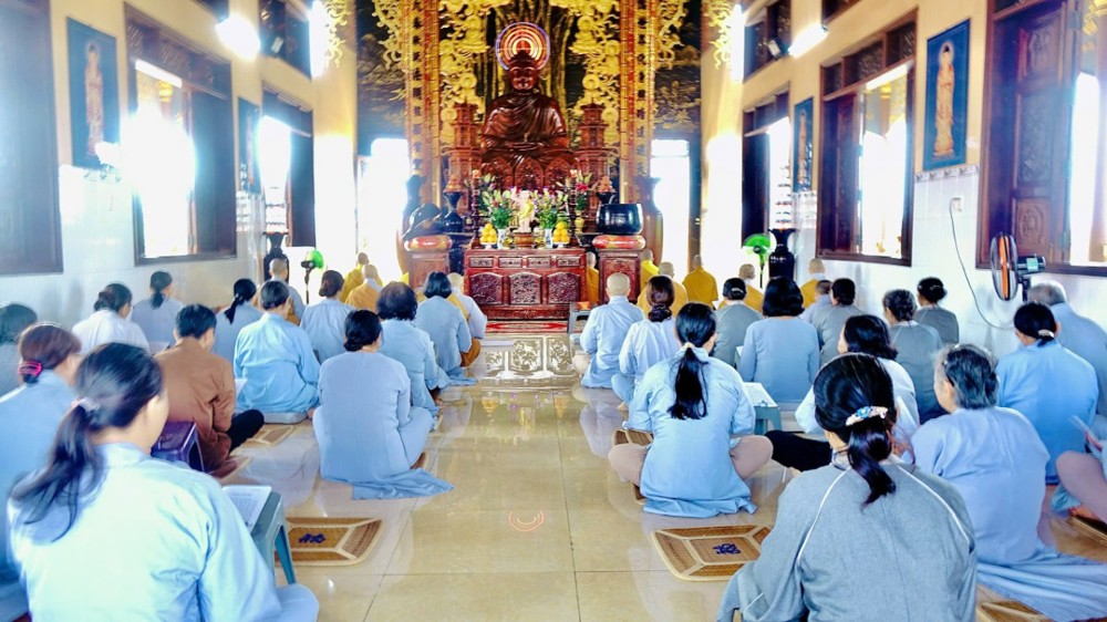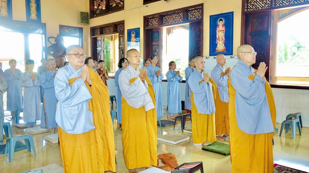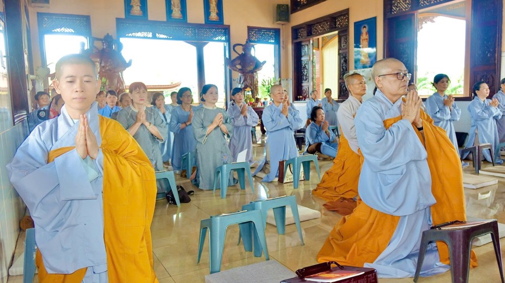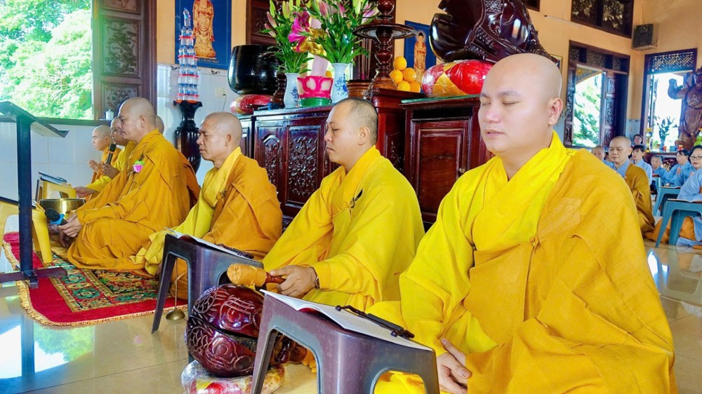 Sau phần pháp thoại và thảo luận Tăng sự, toàn thể chư Tăng Ni và Phật tử đồng vân tập về Đại hùng Bảo điện, trang nghiêm trì tụng Chơn Kinh, kinh hành niệm Phật, nhất tâm cầu nguyện cho quốc thái dân an, thế giới hòa bình, âm siêu dương thới. Trong giây phút thiêng liêng ấy, ai nấy đều cảm nhận sâu sắc tình huynh đệ pháp lữ, cùng nhau kết nối tâm lực và nguyện lực để hộ trì Phật pháp, phụng sự chúng sinh, góp phần làm rạng ngời ánh đạo giữa lòng cuộc đời.