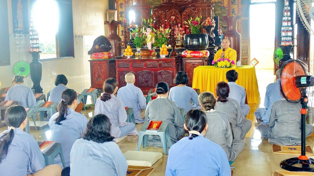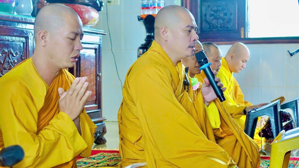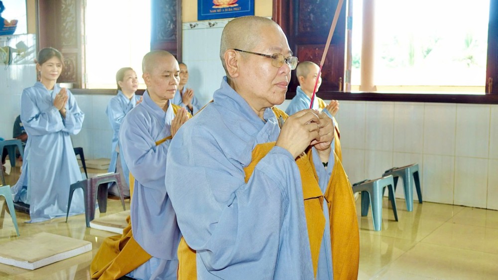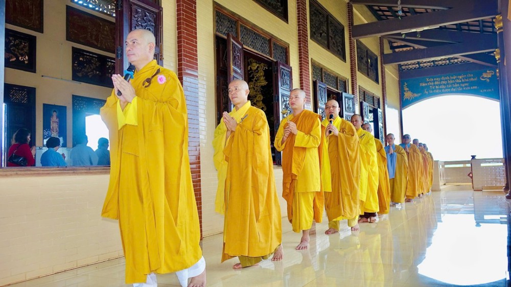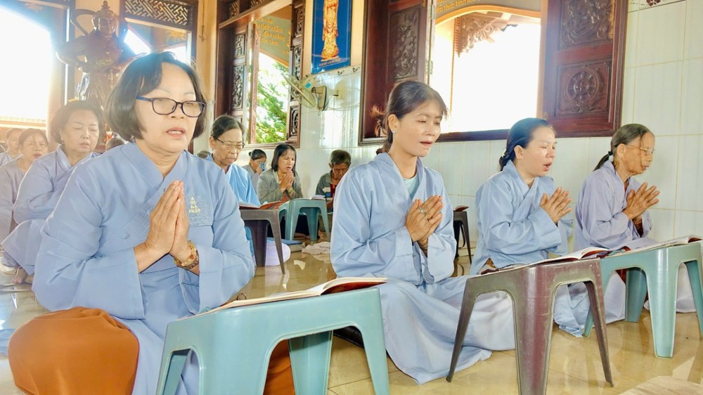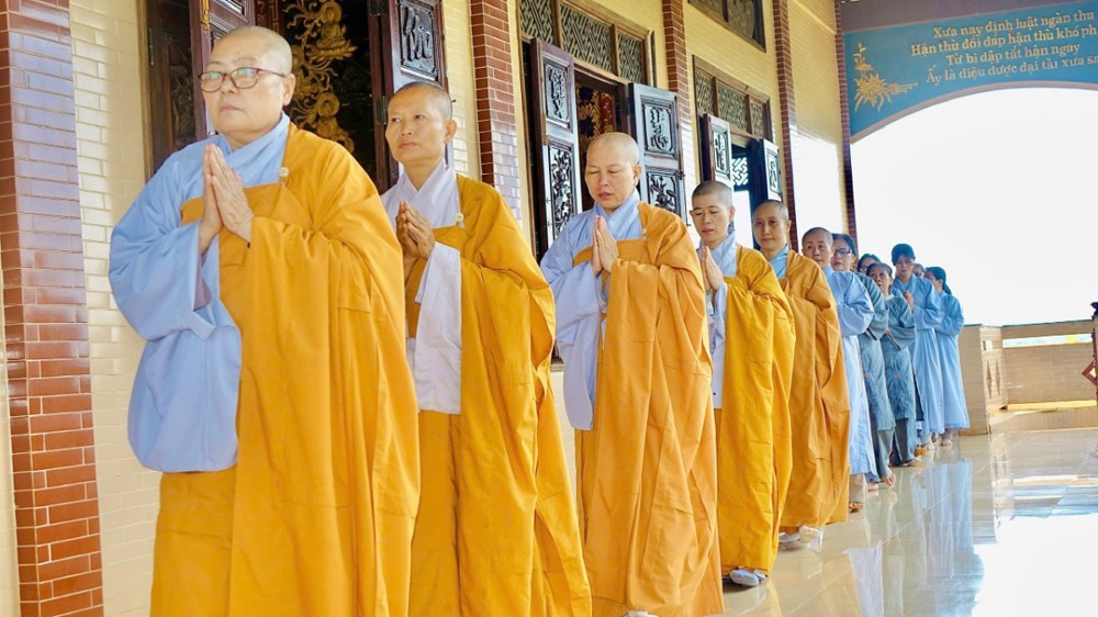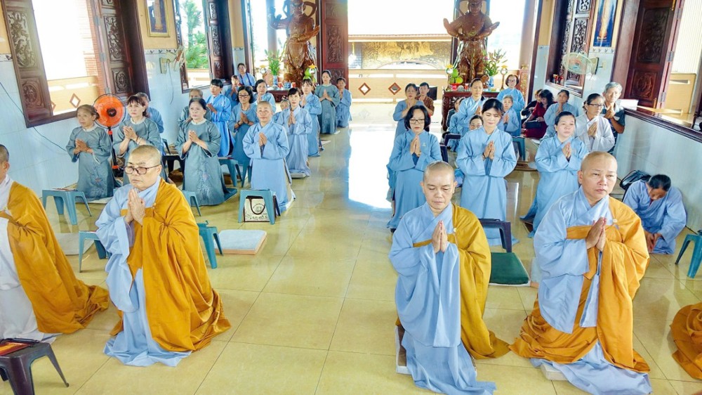 Sau phần pháp thoại và thảo luận Tăng sự, toàn thể chư Tăng Ni và Phật tử đồng vân tập về Đại hùng Bảo điện, trang nghiêm trì tụng Chơn Kinh, kinh hành niệm Phật, nhất tâm cầu nguyện cho quốc thái dân an, thế giới hòa bình, âm siêu dương thới. Trong giây phút thiêng liêng ấy, ai nấy đều cảm nhận sâu sắc tình huynh đệ pháp lữ, cùng nhau kết nối tâm lực và nguyện lực để hộ trì Phật pháp, phụng sự chúng sinh, góp phần làm rạng ngời ánh đạo giữa lòng cuộc đời.