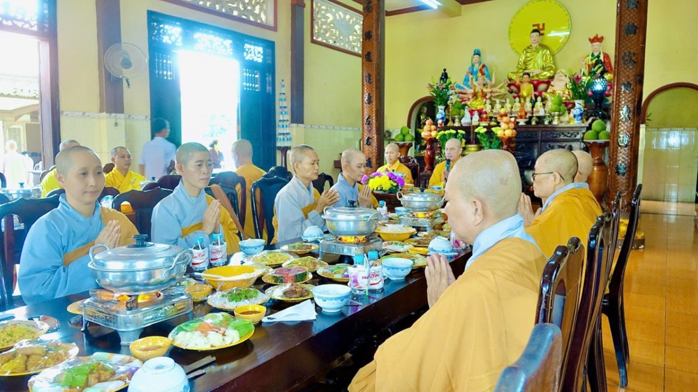 Kết thúc chương trình, đại chúng cùng vân tập trai đường, thọ trai trong chánh niệm, nuôi dưỡng tình huynh đệ và niềm an lạc chung. Buổi sinh hoạt khép lại trong tinh thần hoan hỷ chan hòa. Trước khi chia tay, toàn thể Tăng Ni và Phật tử đã chụp hình lưu niệm, ghi lại những khoảnh khắc thiêng liêng, và cùng nhau hẹn gặp lại trong kỳ sinh hoạt tiếp theo vào ngày 13 tháng 9 năm Ất Tỵ tại chùa Quan Âm, xã Lộc Ninh, tỉnh Đồng Nai.