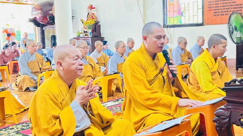 Trong tinh thần lục hòa cộng trụ, chư Tôn đức đã cùng nhau nhìn lại những kết quả Phật sự đã đạt được trong năm 2025, thẳng thắn chỉ ra những tồn đọng chưa hoàn thành, từ đó rút ra những bài học kinh nghiệm quý báu và đề ra phương hướng hoạt động cho năm 2026. Điểm nổi bật của buổi sinh hoạt là không khí trao đổi cởi mở, sôi nổi nhưng đầy tôn kính, với nhiều ý kiến đóng góp thiết thực, sáng tạo và giàu tâm huyết của chư Tôn đức Tăng Ni. Tất cả đều hướng về mục tiêu chung: làm sao để Phật sự ngày càng hiệu quả, đáp ứng tốt hơn nhu cầu tu học của Tăng Ni và Phật tử, góp phần hoằng dương Chánh pháp, lợi lạc quần sinh, xây dựng Phật giáo khu vực ngày càng ổn định và phát triển bền vững.