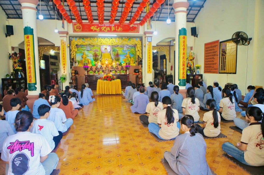 Sau buổi sinh hoạt, toàn thể chư Tăng Ni và quý Phật tử đã cùng vân tập về chánh điện, đồng tâm tụng kinh Phổ Môn, cầu nguyện quốc thái dân an, đạo pháp trường tồn, chúng sinh an lạc.