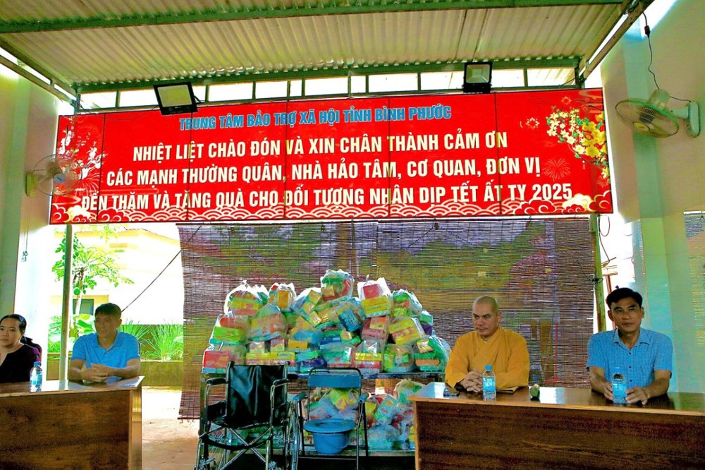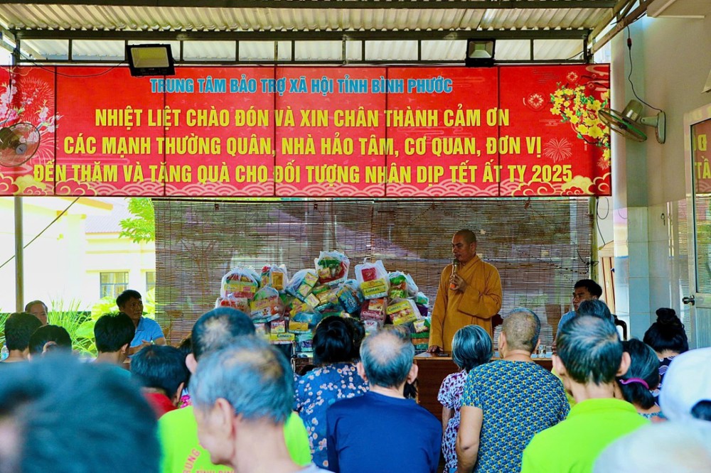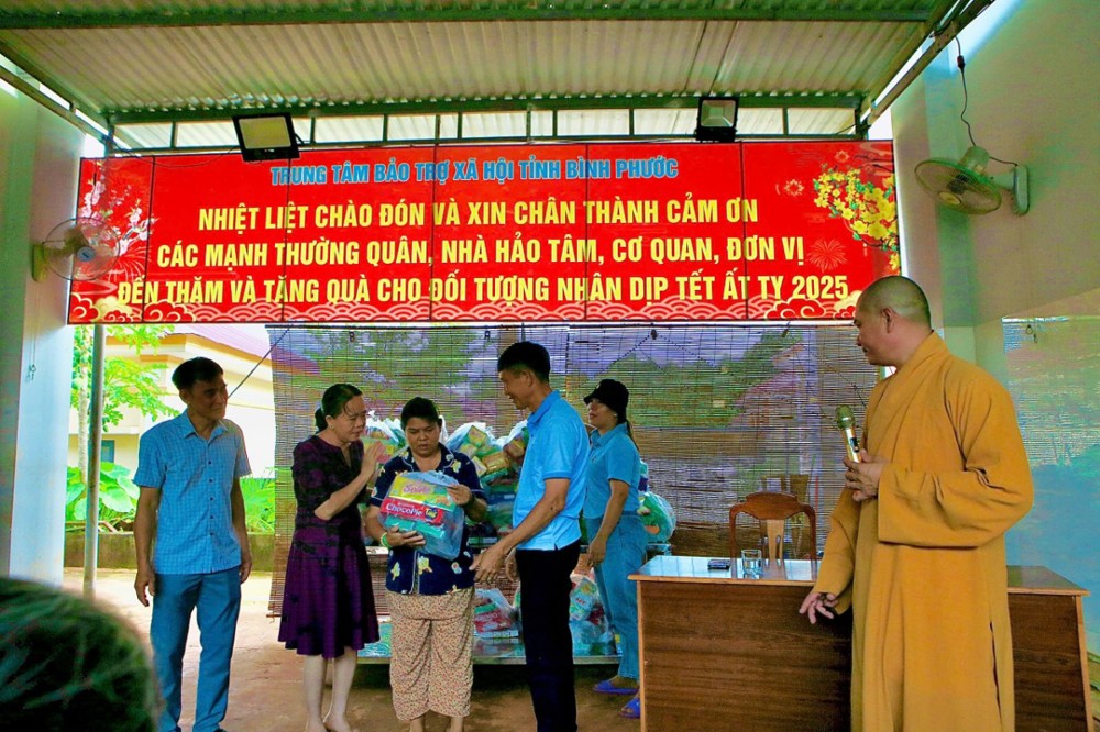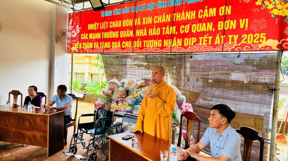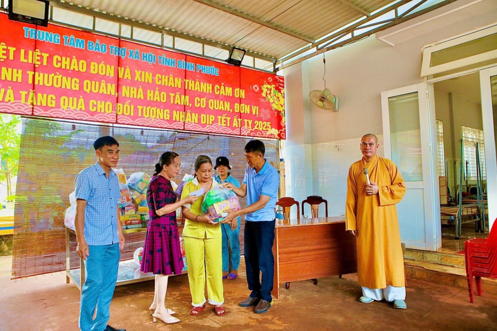 Tại buổi trao quà, Đại đức Thích Bửu Hòa đã gửi lời tri ân đến Ban Giám đốc Trung tâm Bảo trợ xã hội Bình Phước đã tạo điều kiện để đoàn được thăm hỏi, giao lưu và chia sẻ yêu thương. Đồng thời Đại đức cũng ân cần thăm hỏi từng cụ già, từng em nhỏ và trao những phần quà tuy mộc mạc nhưng chứa đựng trong đó là cả tấm lòng của người con Phật, khởi phát từ tâm từ bi và tinh thần “phụng sự nhân sinh, tốt đời đẹp đạo”.