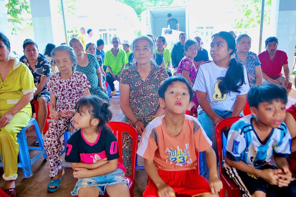 Buổi trao quà diễn ra trong không khí thân tình và xúc động. Tiếng cười xen lẫn những giọt nước mắt hạnh phúc của người nhận, các cụ già nắm chặt tay quý nhà từ thiện, những em nhỏ hồn nhiên nở nụ cười rạng rỡ.