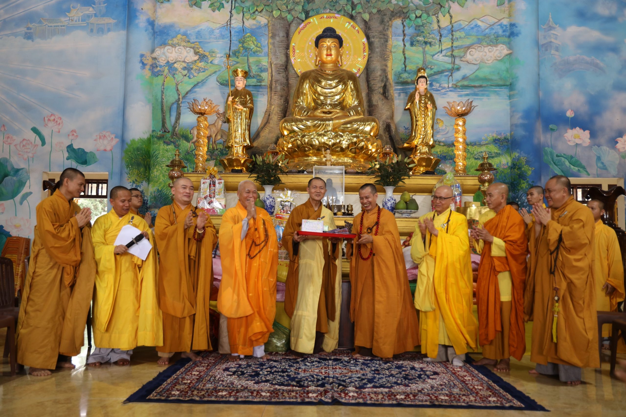 Tại các điểm đến, đoàn dâng hương lễ Phật, TT.Thích Minh Trí thay mặt đoàn vấn an sức khỏe chư tôn Trưởng lão Hòa thượng, Ban Chức sự các trường hạ thăm hỏi, động viên tinh thần tu học đến chư hành giả an cư. Sau đó, TT.Thích Minh Trí trao tịnh tài, tịnh vật cúng dường đến Ban Chức sự 05 trường hạ.
