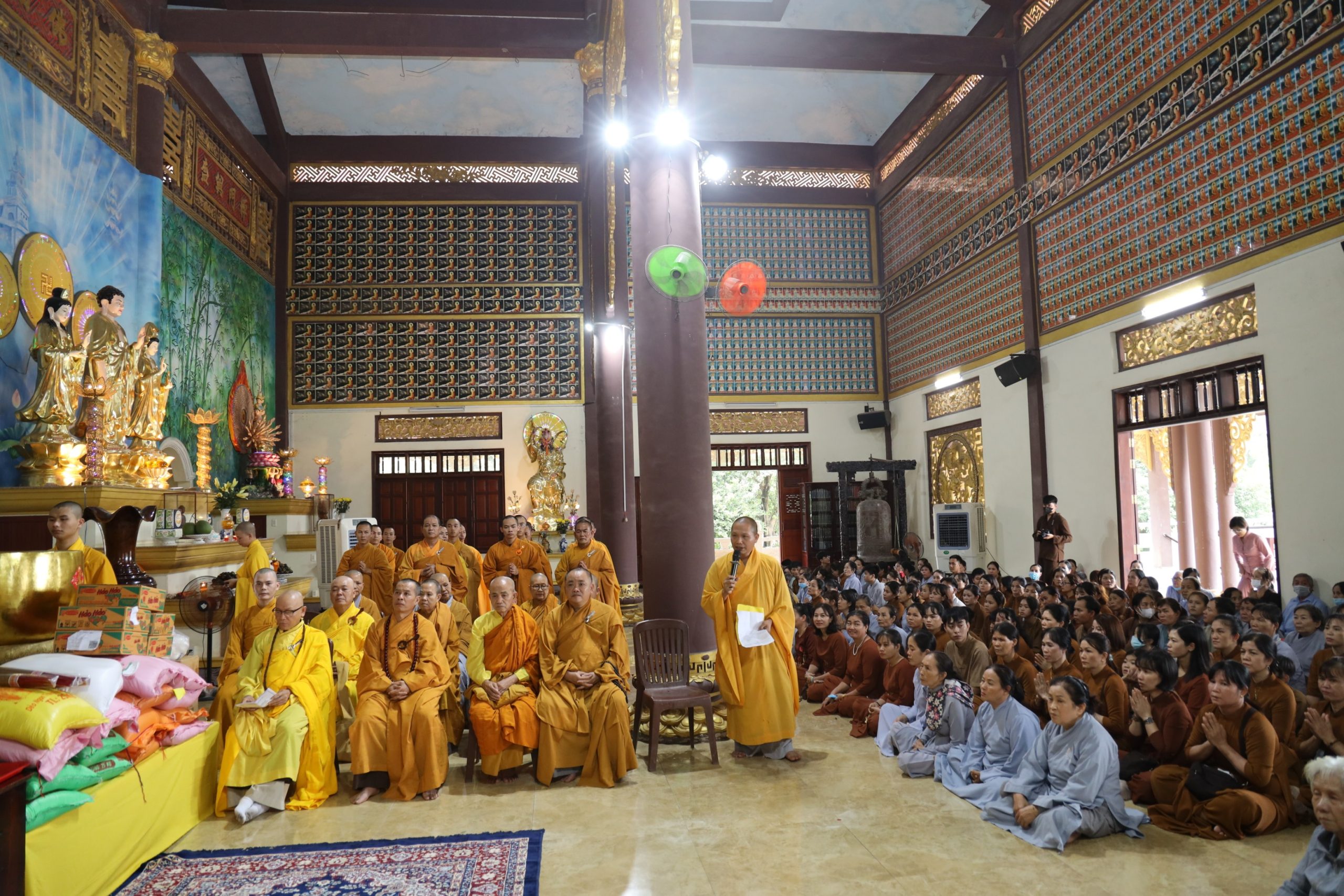 Tiếp theo, đại diện ban Chức sự của các trường hạ có lời tri ân chư Tôn thiền đức Ban Trị sự Tp.Biên Hòa, chư Tăng Ni trụ trì các tự viện trong thành phố luôn quan tâm, hỗ trợ việc tổ chức An cư kiết hạ cũng như cúng dường, hộ trì để chư hành giả an tâm tu học.
