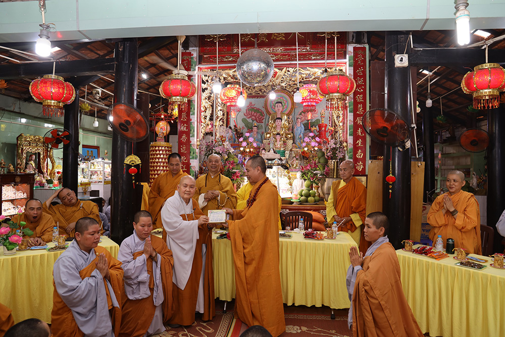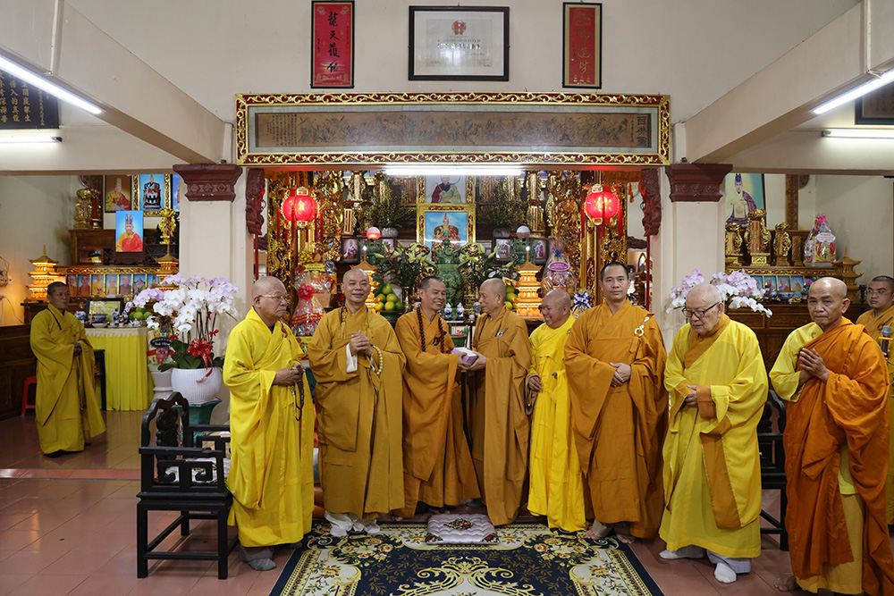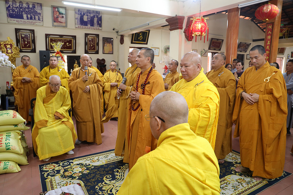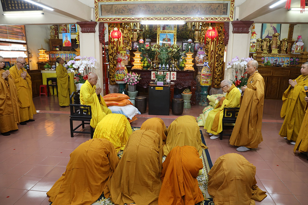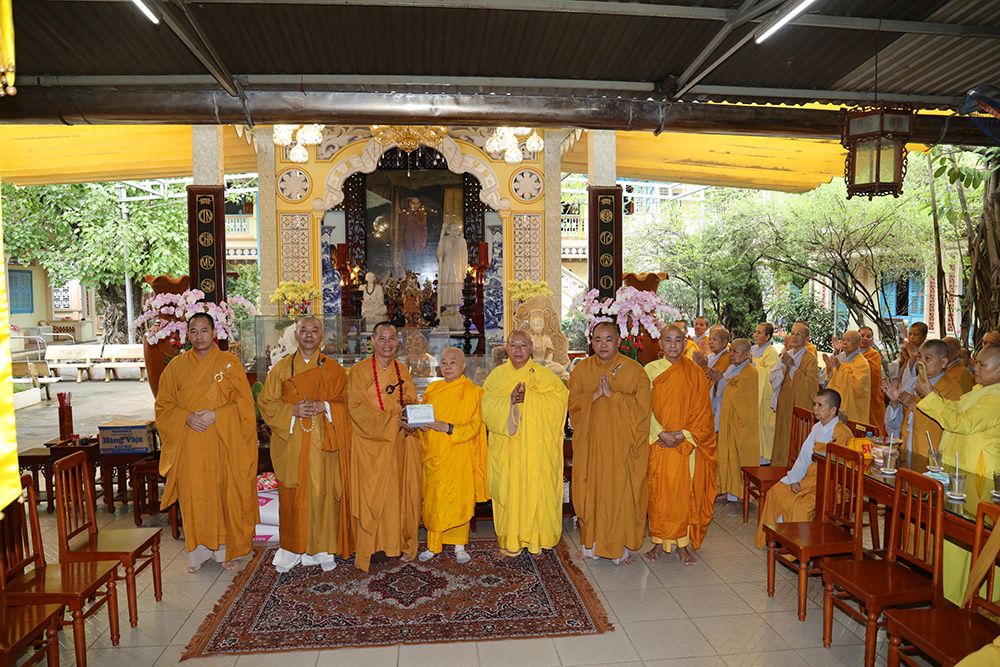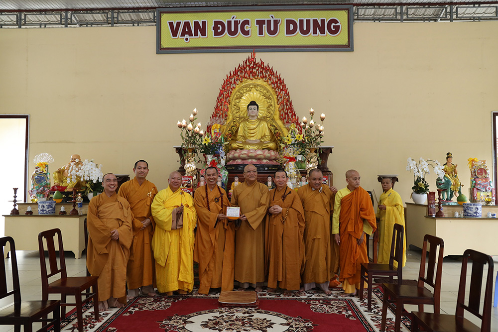 Tại các điểm, đoàn dâng hương lễ Phật, TT. Thích Minh Trí đã thay mặt đoàn vấn an sức khỏe chư tôn Trưởng lão Hòa thượng, Ban Chức sự các trường hạ; thăm hỏi, động viên tinh thần tu học đến chư hành giả an cư. Sau đó, TT. Thích Minh Trí đã đại diện trao tịnh tài, tịnh vật cúng dường đến Ban Chức sự 07 trường hạ.