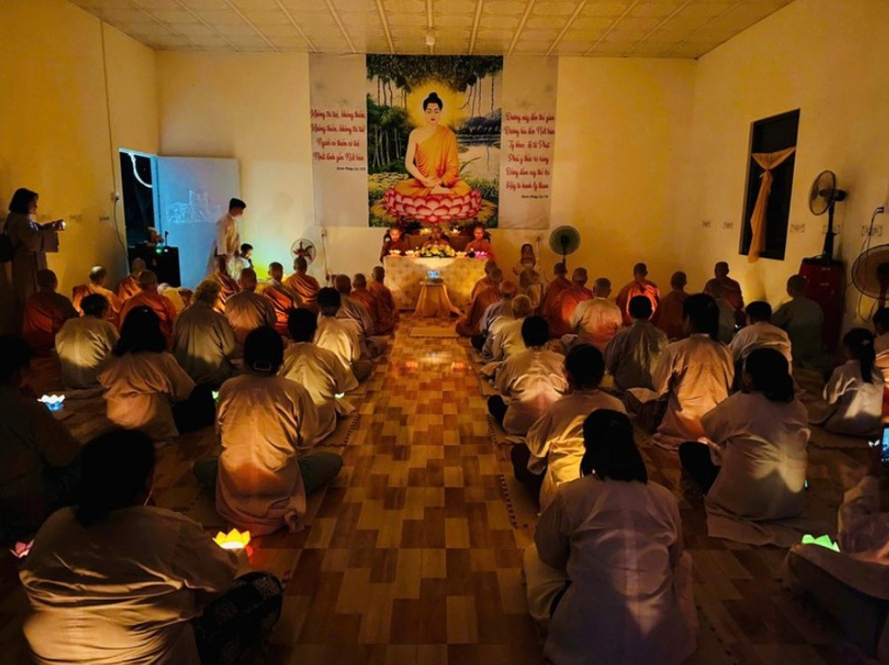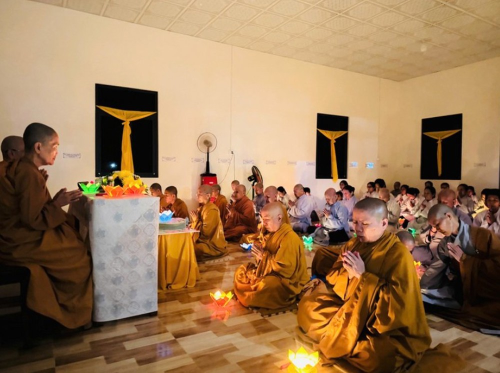 Điểm nhấn thiêng liêng của buổi lễ là Đêm hoa đăng với nghi thức truyền đăng. Ánh sáng được tiếp nối từ đèn Phật, Ni trưởng chứng minh đã truyền trao ánh sáng đến chư Tôn đức Ni và lan tỏa đến toàn thể đại chúng, biểu trưng cho sự tiếp nối không gián đoạn của Chánh pháp. Trong không gian lắng yên, hàng trăm ngọn nến nhỏ cùng được thắp sáng, soi chiếu không chỉ đạo tràng mà còn thắp lên ánh sáng tỉnh thức trong tâm mỗi hành giả.