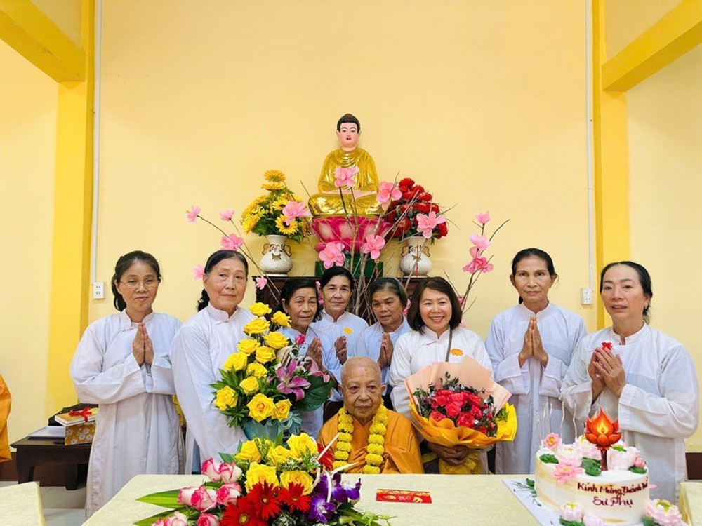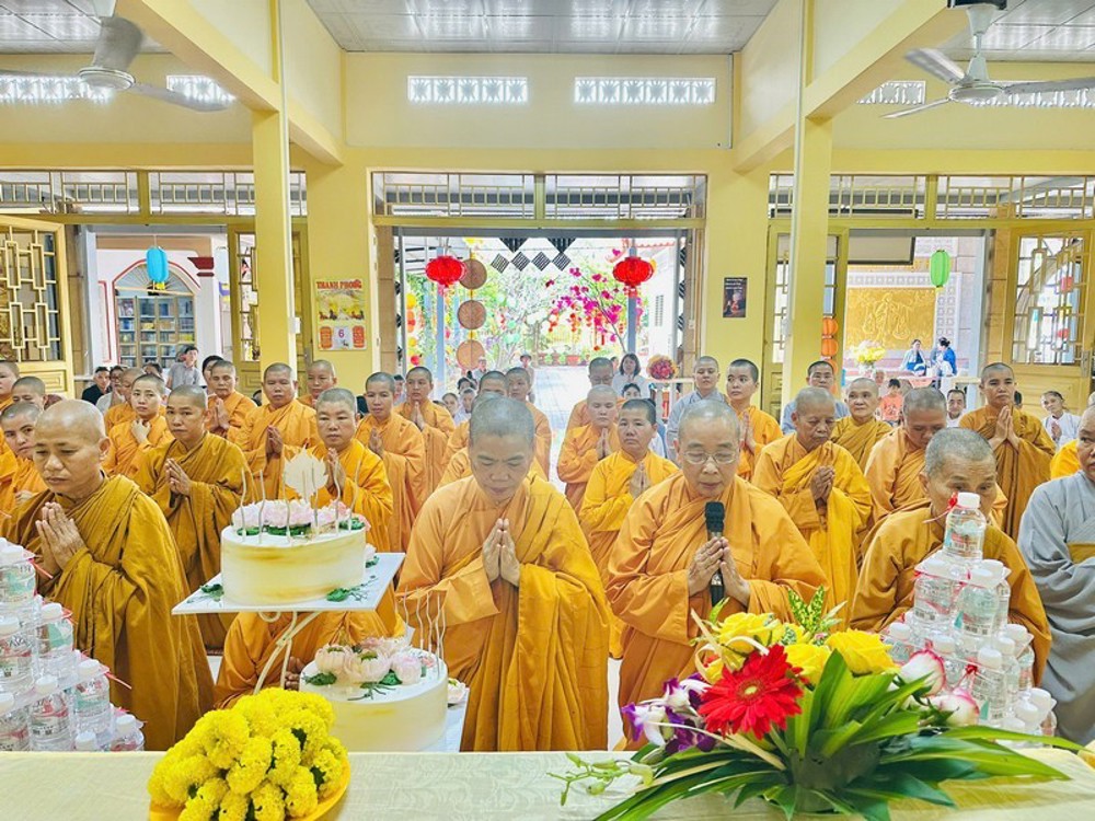 Nhân dịp này, chư Ni và Phật tử đã thành kính dâng hoa và phẩm vật khánh tuế lên Ni trưởng Viện chủ, bày tỏ lòng tôn kính và tri ân sâu sắc. Đại chúng kính chúc Ni trưởng pháp thể khinh an, đạo thọ miên trường, tuệ đăng thường chiếu, mãi là điểm tựa tâm linh và ngọn đèn trí tuệ soi sáng, dẫn dắt Ni đoàn trên bước đường tu học và phụng sự Chánh pháp.