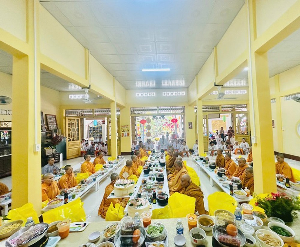 Tiếp đó, Lễ cúng dường trai tăng được trang nghiêm cử hành, thể hiện tinh thần tri ân – báo ân, đồng thời hồi hướng công đức cầu nguyện Giác linh cố Ni trưởng thượng phẩm thượng sanh, cao đăng Phật quốc; nguyện Phật pháp trường tồn, đại chúng an hoà, thanh tịnh và chúng sinh muôn loài đều thấm nhuần ân đức Phật pháp.