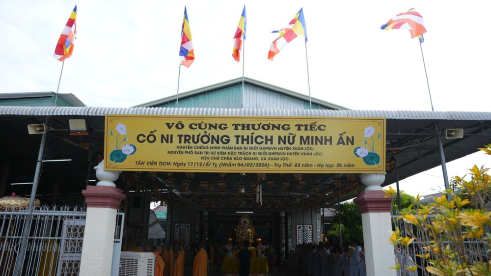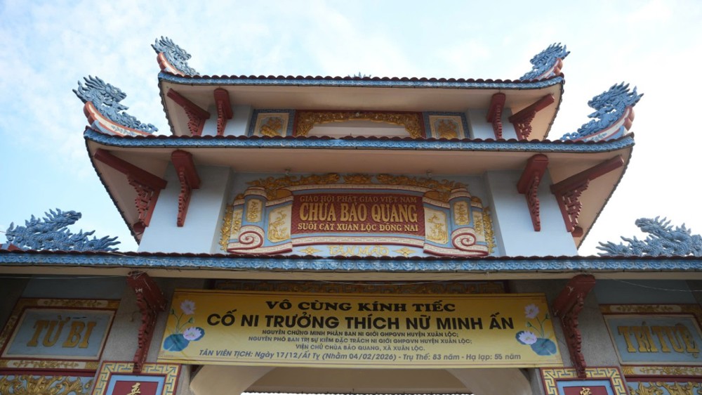 PSO – Chiều ngày 04/02/2026 (nhằm ngày 17 tháng 12 năm Ất Tỵ), tại chùa Bảo Quang (xã Xuân Lộc, tỉnh Đồng Nai), Ban Tổ chức tang lễ đã trang nghiêm cử hành lễ nhập kim quan cố Ni trưởng Thích Nữ Minh Ấn – nguyên Chứng minh Phân ban Ni giới GHPGVN huyện Xuân Lộc; nguyên Phó Ban Trị sự kiêm Đặc trách Ni giới GHPGVN huyện Xuân Lộc; Viện chủ chùa Bảo Quang.