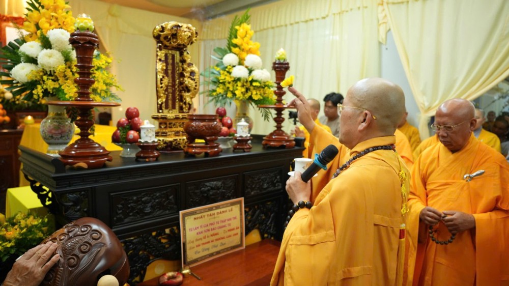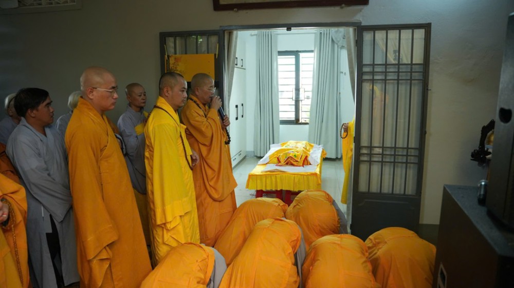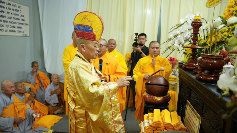 Tại buổi lễ, Thượng tọa Thích Chánh Huệ – Trụ trì chùa Linh Phú, đảm nhiệm Sám chủ đàn tràng, đã chủ trì các nghi thức niêm hương bạch Phật, khai kinh, khai chung bảng và cung thỉnh nhục thân Ni trưởng nhập kim quan trong không khí trang nghiêm, thanh tịnh và đầy đạo vị.