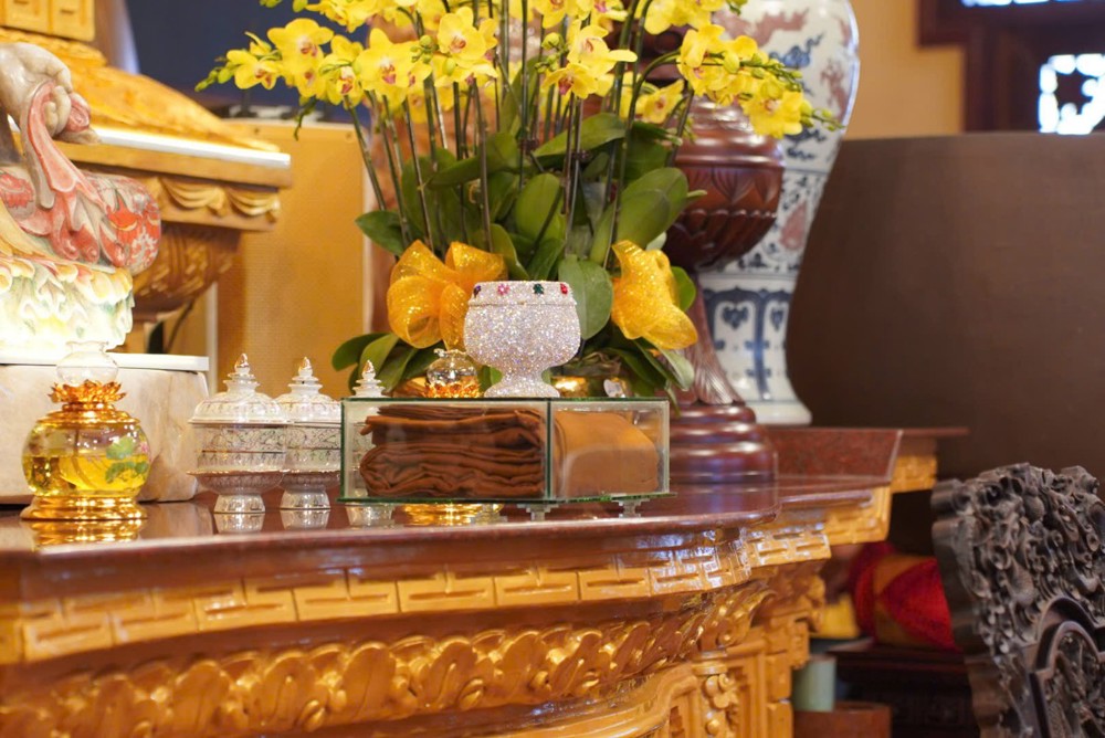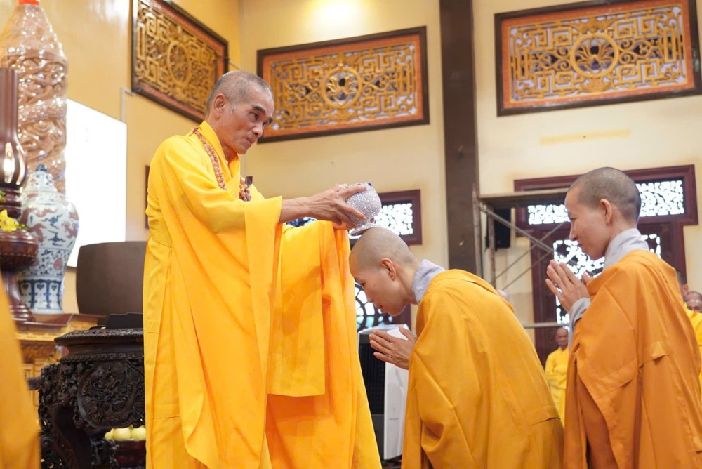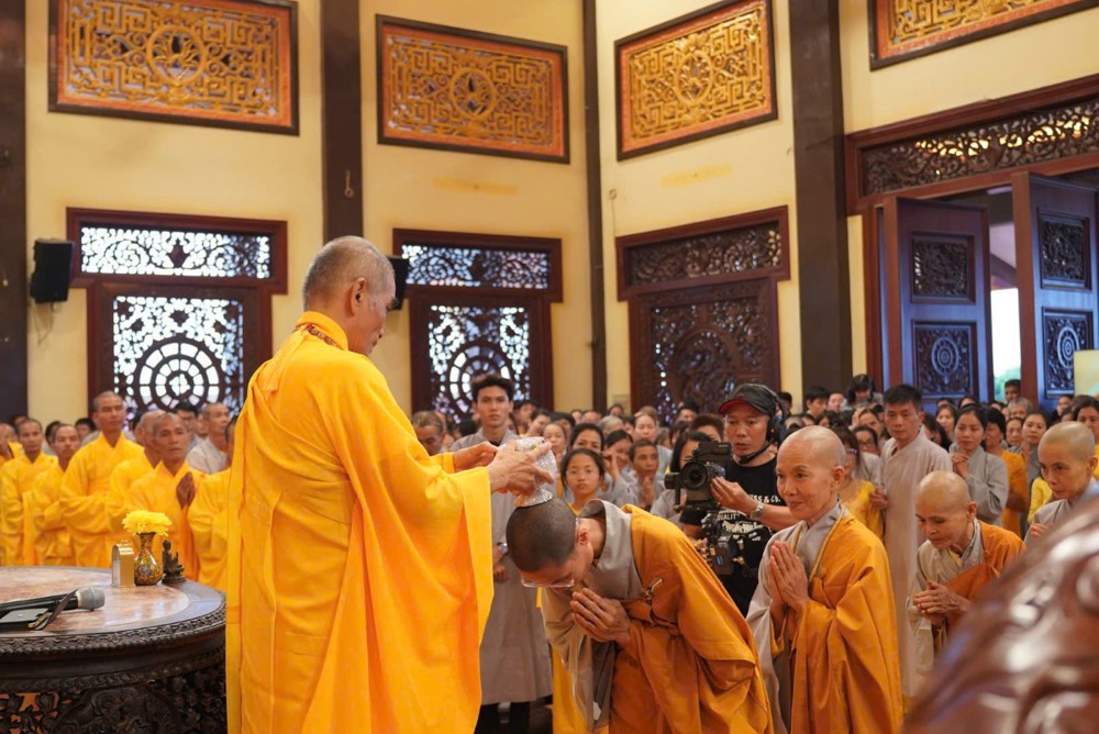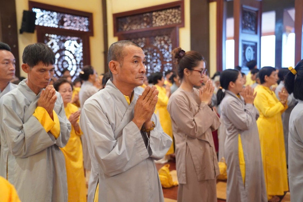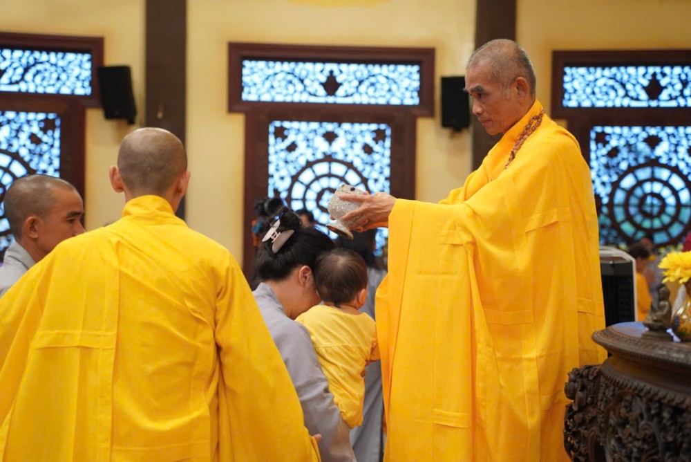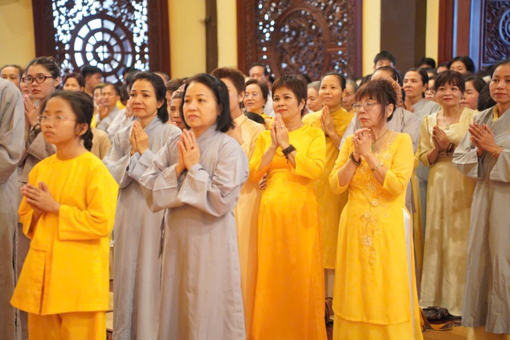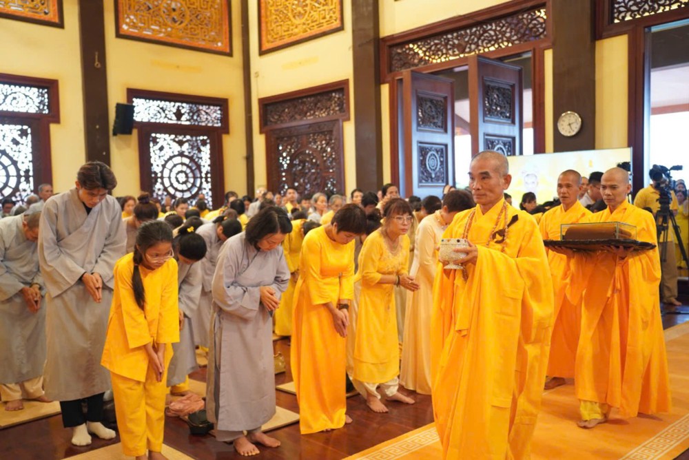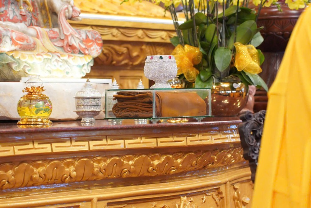 Trong tiếng chuông trống ngân vang trang nghiêm, chư Tôn đức cùng hàng Phật tử ngay ngắn thành kính nhiễu quanh, nhất tâm đảnh lễ và chiêm bái Y, Bát trước khi nghi thức chính thức an vị được cử hành tại ban thờ trang nghiêm phía trước tôn tượng nơi Thiền đường tầng hai của chùa. Không khí buổi lễ thấm đượm sự thanh tịnh, linh thiêng, gợi nhắc mỗi người con Phật quay về nuôi dưỡng chánh niệm, tăng trưởng tín tâm và tinh tấn trên con đường tu học giải thoát.