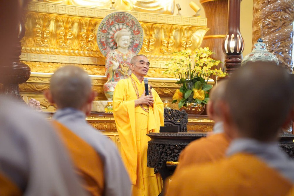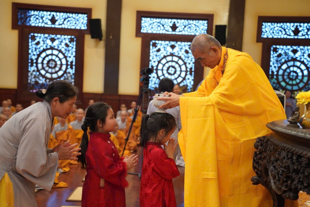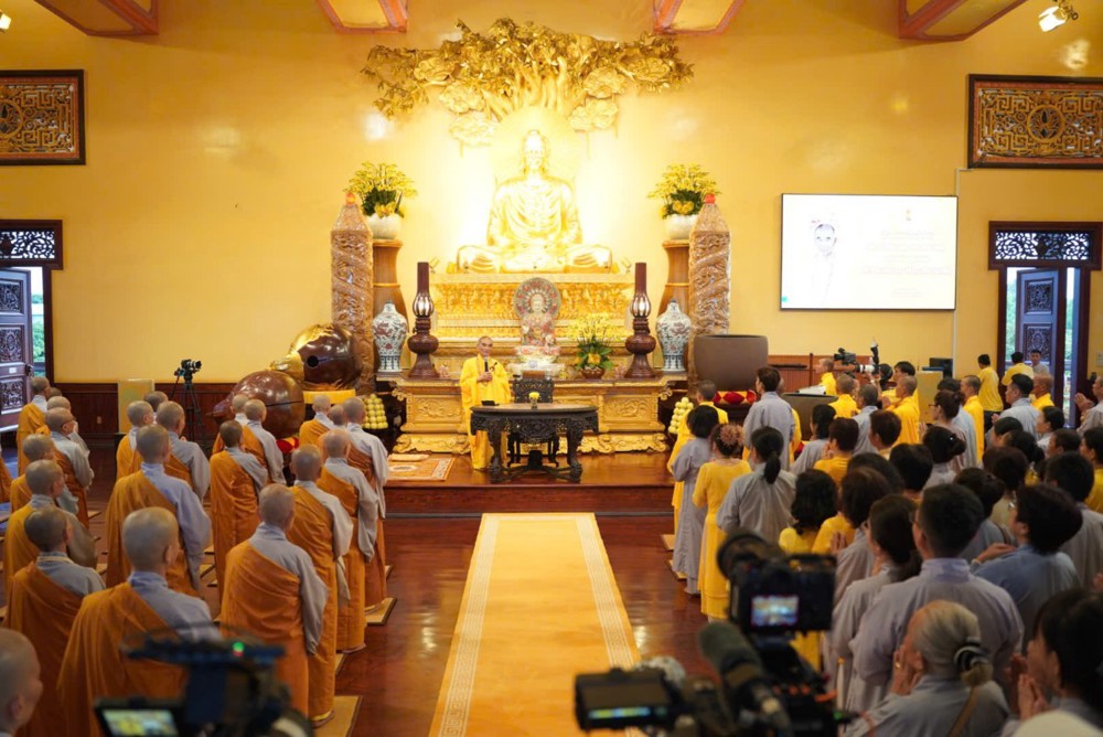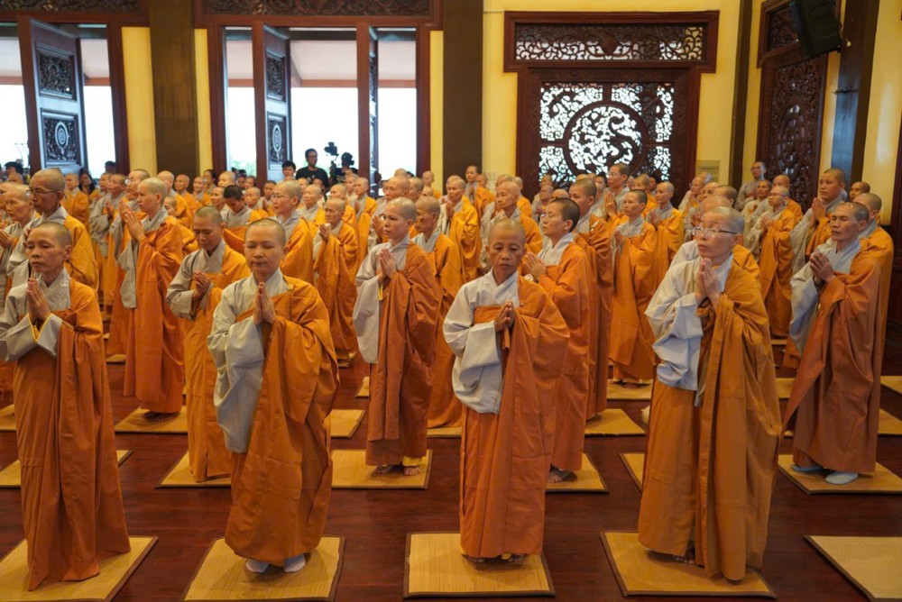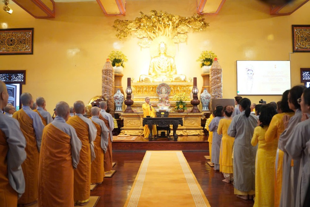 Giữa âm vang trầm hùng của chuông trống Bát-nhã lan tỏa khắp không gian già lam, ban Cung nghinh đã cung thỉnh Y và Bát quang lâm Thiền đường tầng hai để cử hành nghi thức tâm linh an vị theo truyền thống thiền môn. Buổi lễ được diễn ra trong sự trang nghiêm, thành kính với sự hiện diện của chư Tôn đức Tăng Ni cùng đông đảo Phật tử gần xa đồng về tham dự, nhất tâm chiêm bái.