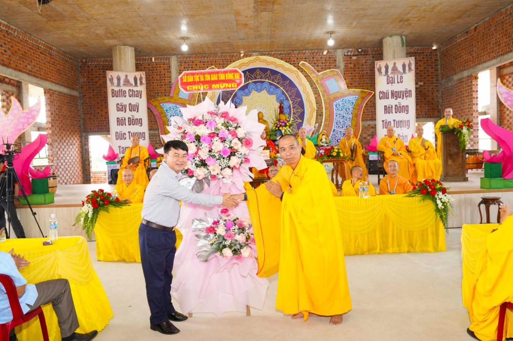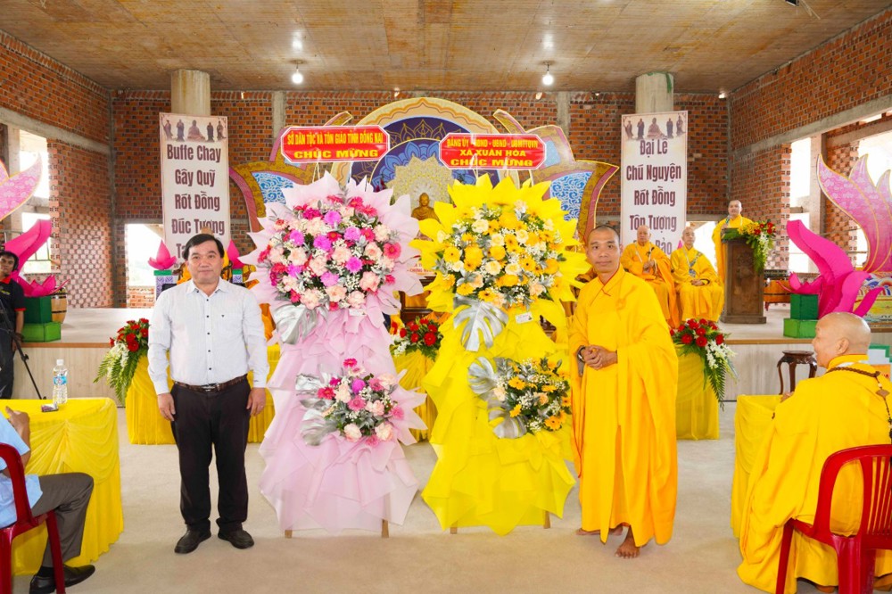 Tại buổi lễ, Đại đức Trụ trì đã đón nhận nhiều lẵng hoa chúc mừng của đại diện các cấp lãnh đạo Chính quyền tỉnh Đồng Nai và xã Xuân Hòa. Chúc mừng buổi lễ được thành tựu, mang lại ngôi phạm vũ trang nghiêm, để bà con Phật tử địa phương tiếp tục tu học và phụng sự đạo pháp.