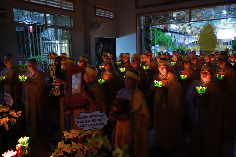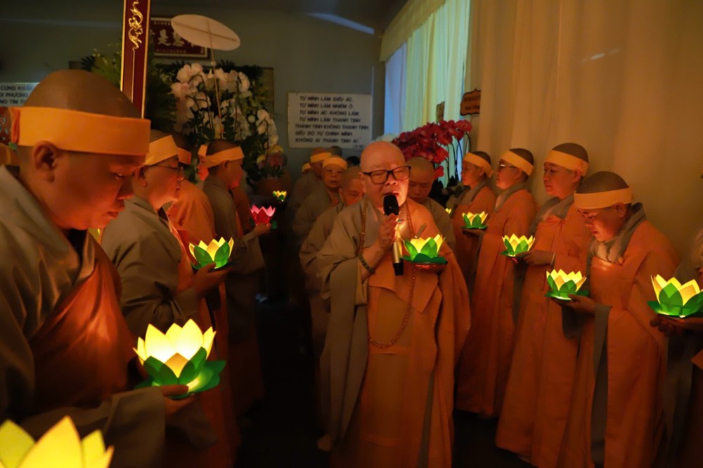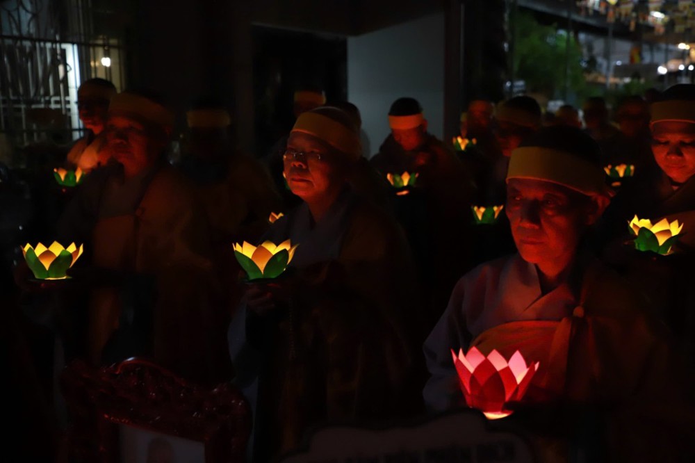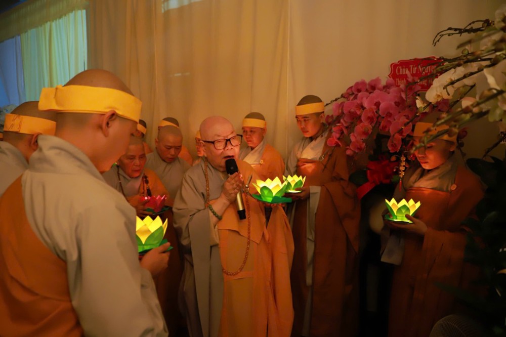 Tại buổi lễ, sau lời tưởng niệm đầy xúc động của môn đồ pháp quyến, toàn thể đại chúng đã đồng tâm thắp sáng những ngọn đèn hoa đăng, tuần tự nhiễu đèn quanh kim quan, dâng trọn niềm kính ngưỡng và tiễn biệt người Thầy đã trọn đời tận hiến cho Đạo pháp.
