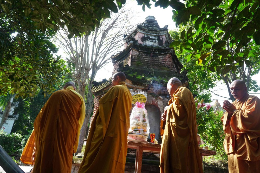 Sau lời cung tuyên tiểu sử và lịch sử phát triển của ngôi cổ tự Phổ Quang, Chư tôn đức đã trang nghiêm trước Tổ đường dâng hương tưởng niệm và đảnh lễ công hạnh của Chư vị Tổ sư.