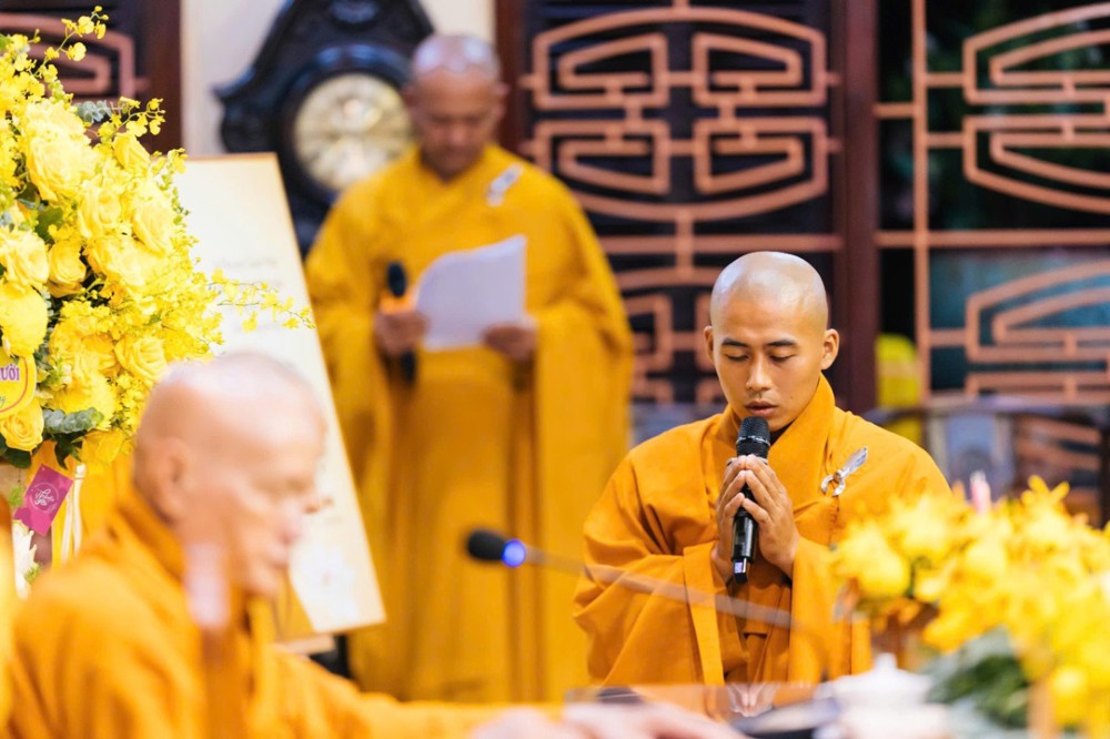 Buổi lễ diễn ra trong không gian ấm áp tình Linh Sơn pháp lữ, chư Tôn Thiền đức Tăng Ni và chúng Phật tử tại gia đồng hướng về Hòa thượng Trưởng ban, nhất tâm kính dâng lời tri ân Ngài. Thượng tọa Thích Đạo Tâm đại diện hàng đệ tử tác bạch: “Không có Sư Ông và Thầy, chúng con vẫn mãi quàng xiên phiêu bạt, không biết đi về nơi nào! Sự xuất thế của quý Ngài là đại phúc duyên cho hàng đệ tử của chúng con. Nhờ có Sư Ông, nhờ có Thầy mà chúng con có cơ hội nhận được Chánh pháp nhãn tạng của Như Lai ngay hiện đời...”