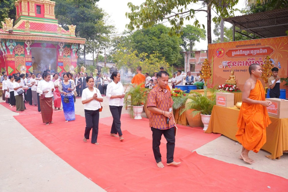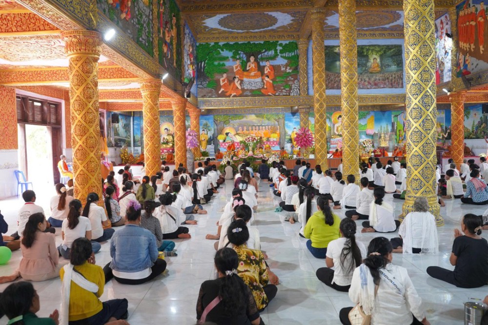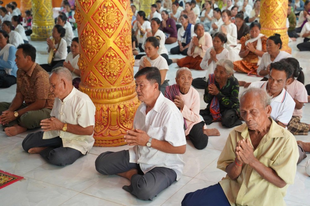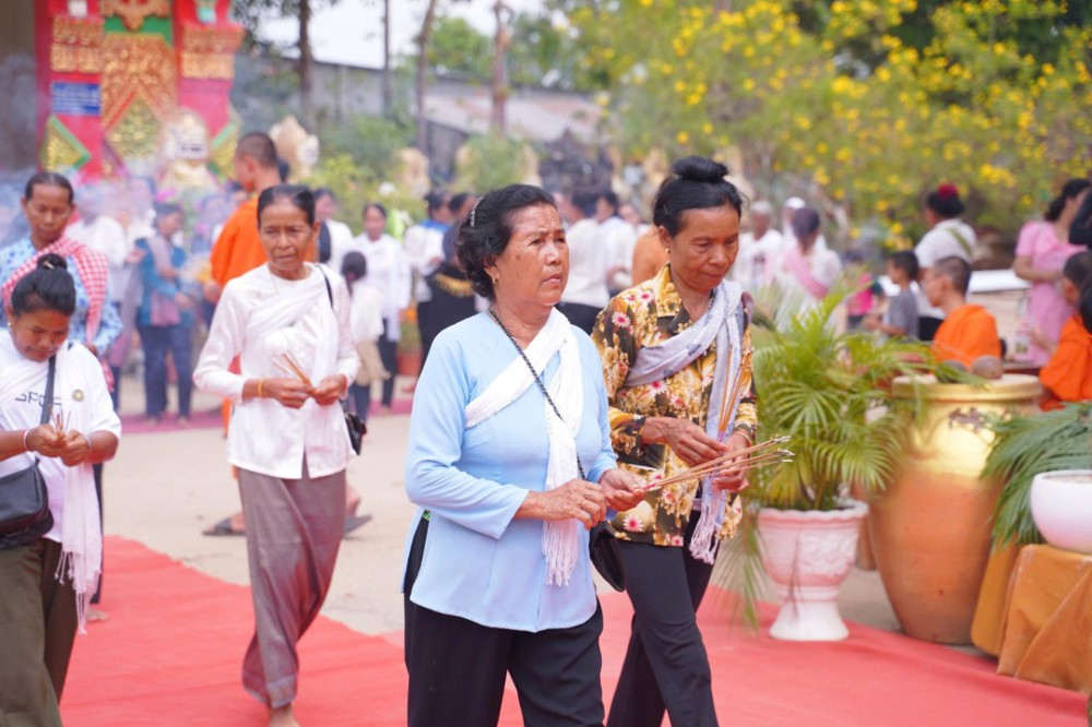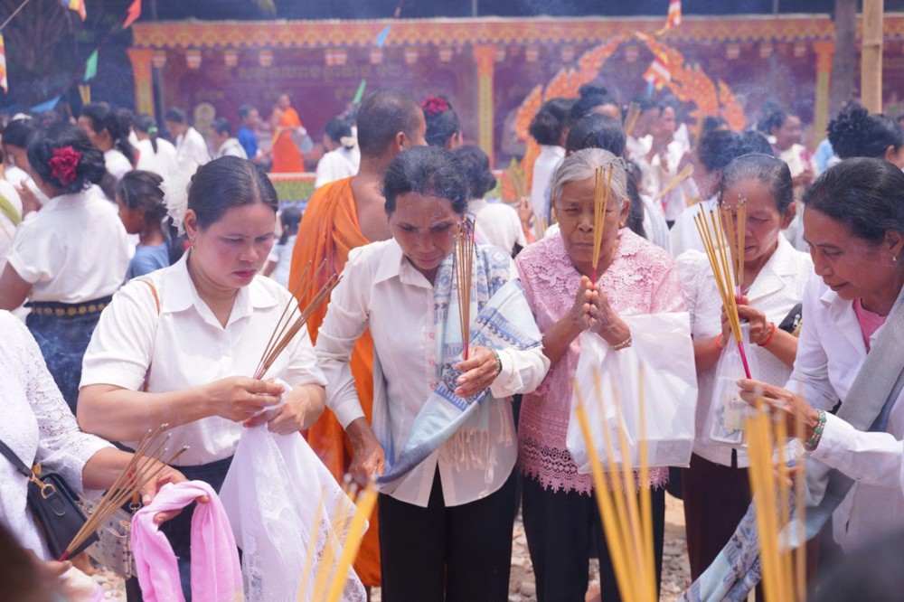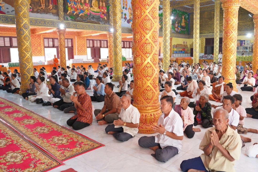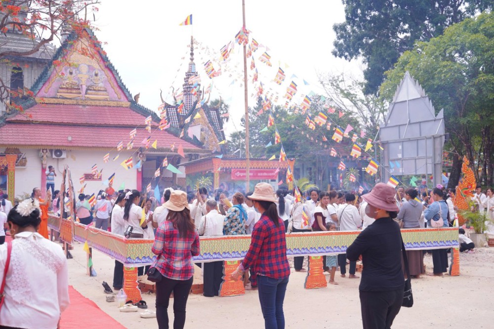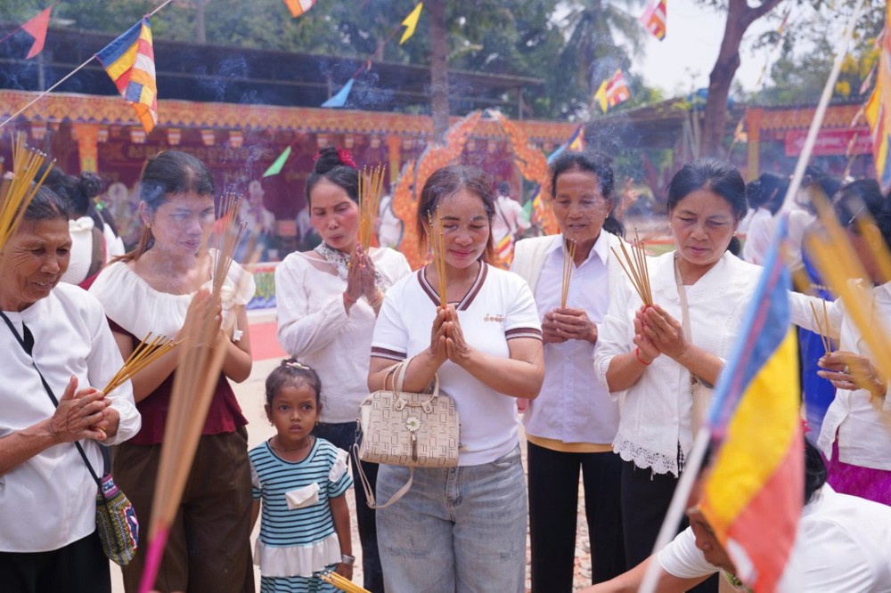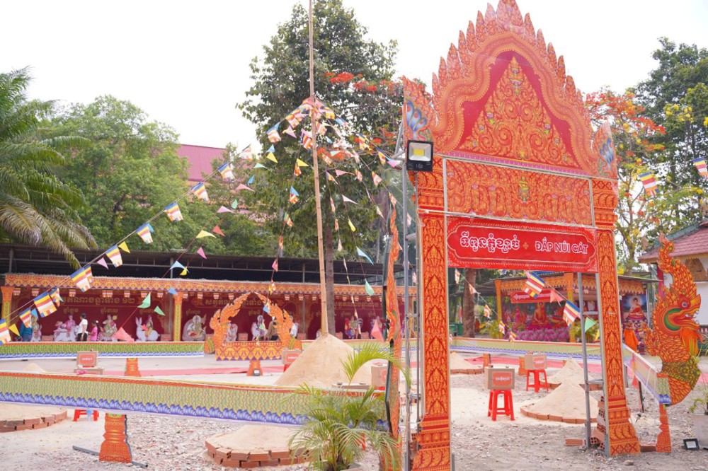 Ngay từ sáng sớm, khuôn viên chùa đã rộn ràng trong sắc màu truyền thống. Phật tử trong trang phục Khmer chỉnh tề, thành kính vân tập, cùng tham dự nghi lễ thiêng liêng mở đầu năm mới.