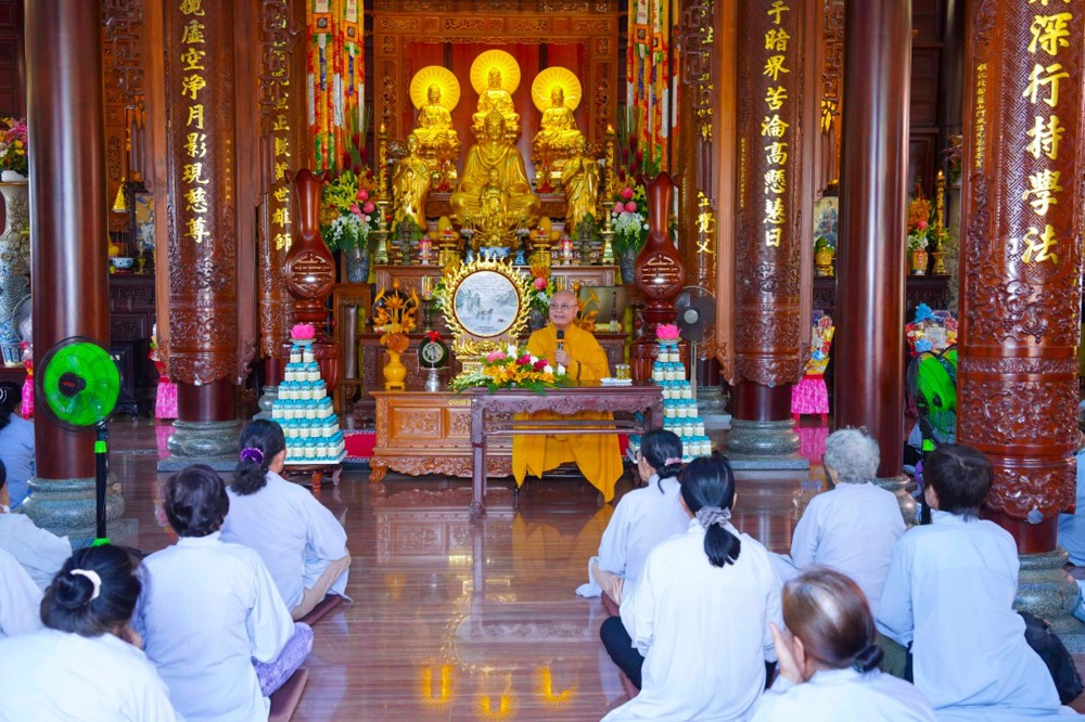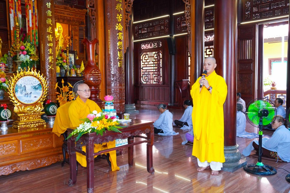 Trong không khí đạo vị đầu năm, đại chúng đã cung kính lắng nghe thời pháp thoại do Hòa thượng Thích Pháp Thủy ban bố. Hòa thượng nhấn mạnh giáo lý nhân quả – nghiệp báo là nền tảng căn bản trong đời sống tu học của người con Phật. Mỗi hành động nơi thân, mỗi lời nói nơi khẩu, mỗi ý niệm nơi tâm đều là nhân gieo vào đời sống hiện tại và tương lai. Vì vậy, người Phật tử cần ý thức sâu sắc về trách nhiệm của mình trong việc nuôi dưỡng thiện nghiệp, chuyển hóa bất thiện nghiệp, lấy từ bi – trí tuệ làm kim chỉ nam trong mọi sinh hoạt đời thường.