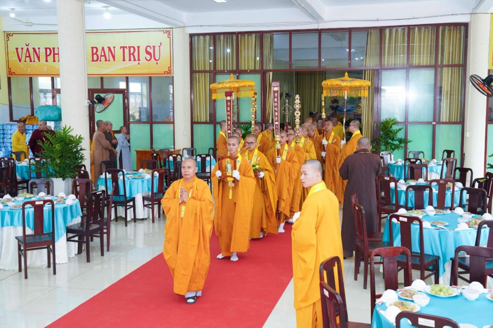 Buổi lễ có sự quang lâm chứng minh của Trưởng lão HT. Thích Thiện Pháp – Ủy viên Thường trực HĐCM, Phó Chủ tịch Thường trực HĐTS; HT. Thích Thiện Đạo – Thành viên HĐCM, Chứng minh Ban Trị sự GHPGVN tỉnh; cùng chư tôn giáo phẩm Chứng minh Ban Trị sự tỉnh; Về Ban Trị sự tỉnh có TT. Thích Huệ Khai - Ủy viên Thường trực HĐTS, Trưởng Ban Trị sự GHPGVN tỉnh, Trưởng Ban Tổ chức; HT. Thích Bửu Chánh - Ủy viên Thư ký HĐTS, Phó trưởng ban Thường trực Ban Trị sự GHPGVN tỉnh, Phó Ban Tổ chức; HT. Thích Tĩnh Cường - Ủy viên HĐTS, Phó trưởng ban Thường trực Ban Trị sự tỉnh, Phó ban Tổ chức; TT. Pháp Quyền - Ủy viên HĐTS, Phó ban kiêm Chánh Thư ký Ban Trị sự GHPGVN tỉnh; cùng chư Tôn đức Phó Ban Trị sự, Trưởng các Ban ngành chuyên môn và sự tham dự của chư Tăng Ni các tự viện trong tỉnh cùng đông đảo quý Phật tử gần xa. Không gian buổi lễ được trang hoàng trang nghiêm, thể hiện rõ nét văn hóa Phật giáo truyền thống, góp phần tạo nên bầu không khí thanh tịnh, hoan hỷ và đầy ý nghĩa.