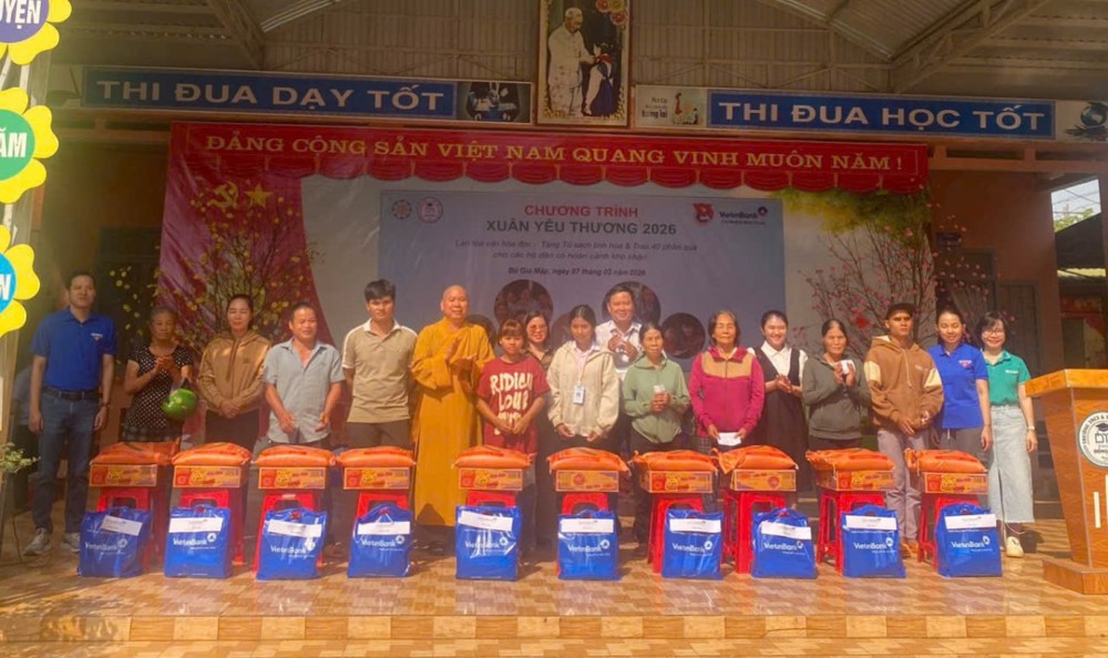 Ngày 7/2/2026, tại Trường THCS & THPT Đăk Mai, xã Bù Gia Mập, không khí trở nên rộn ràng hơn khi Chi đoàn Ngân hàng VietinBank Bình Phước, thông qua sự kết nối của ĐĐ. Thích Minh Hậu, đã trao tặng tủ sách tinh hoa trị giá 10 triệu đồng cho thư viện nhà trường, góp phần lan tỏa văn hóa đọc cho thế hệ trẻ.