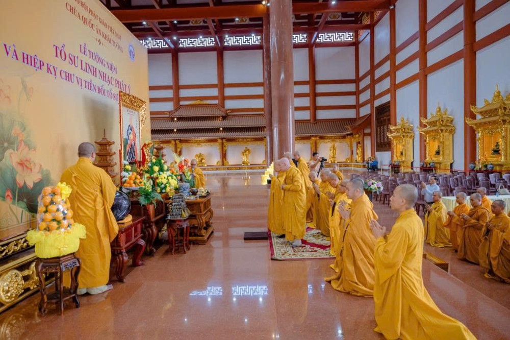 Trong không khí trang nghiêm và thành kính, Trưởng lão Hòa thượng Viện chủ cùng chư tôn giáo phẩm đã dâng hương, mặc niệm, thành kính tri ân công đức sâu dày của Tổ Linh Nhạc – Phật Ý và chư vị Tổ sư, tiền bối hữu công.
