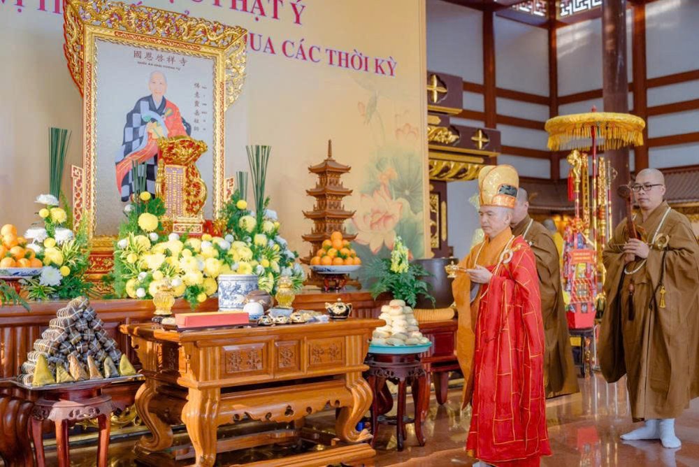 Tiếp đó, nghi thức dâng trà và phạm thức cúng dường giác linh Tổ sư được cử hành thanh tịnh; đại chúng đồng tụng thời Bát-nhã Tâm kinh, nhất tâm cầu nguyện Phật pháp trường lưu, tông môn vĩnh chấn, tổ ấn trùng quang, chúng sinh đồng thành Phật đạo.