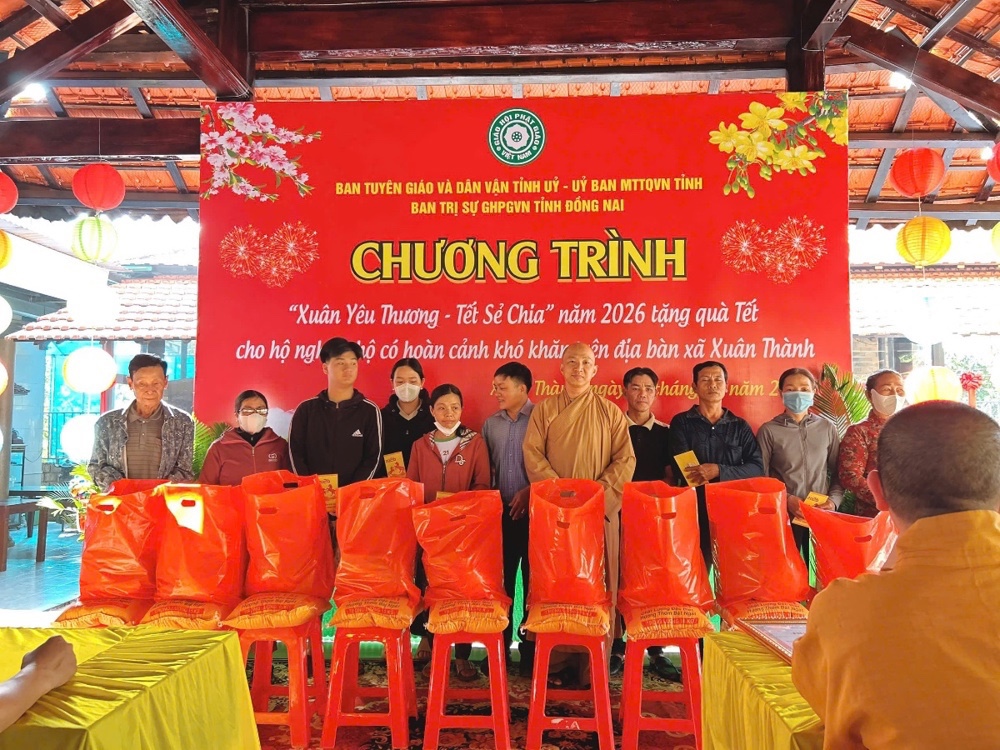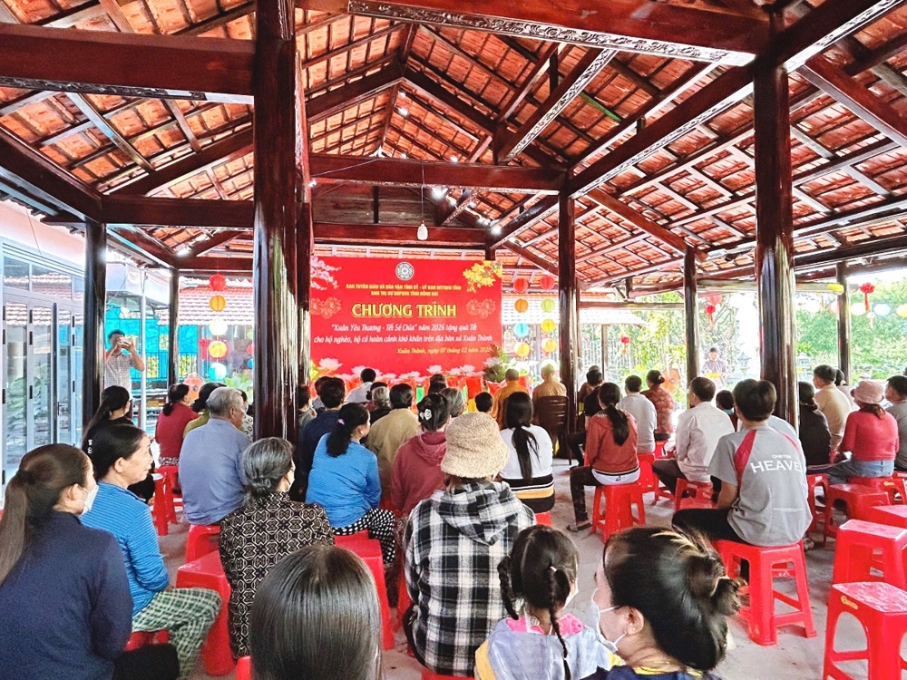 Lan tỏa tinh thần "Phục vụ chúng sinh là cúng dường chư Phật" và thực hiện truyền thống tương "thân tương ái" của dân tộc, chương trình "Xuân yêu thương – Tết sẻ chia năm 2026" được tổ chức nhằm mang đến sự ấm áp, động viên kịp thời cho các hộ nghèo, hộ có hoàn cảnh khó khăn trước thềm năm mới.