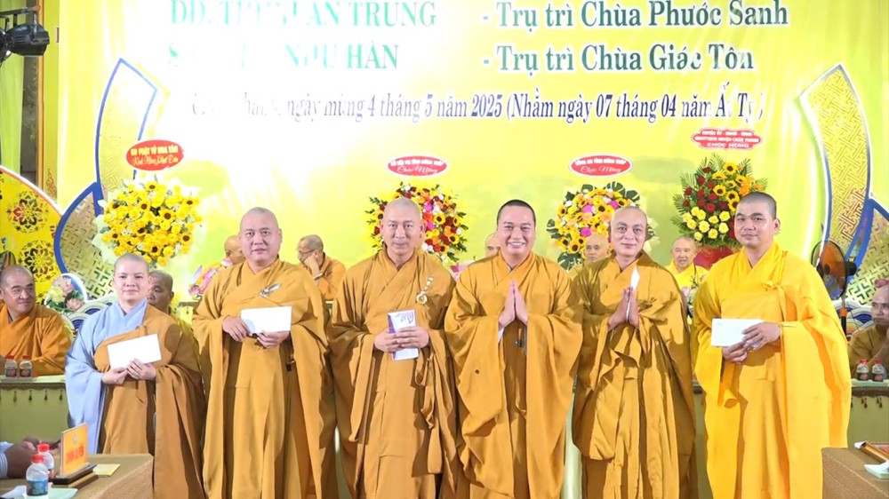 PSO - Chiều ngày 04/5/2025, Ban Trị sự GHPGVN huyện tổ chức lễ công bố Quyết định bổ nhiệm trụ trì 5 cơ sở tự viện trên địa bàn huyện. Sự kiện quan trọng này đánh dấu một bước phát triển mới trong công tác Phật sự và sự ổn định, kế thừa trong việc hoằng dương Phật pháp tại địa phương.