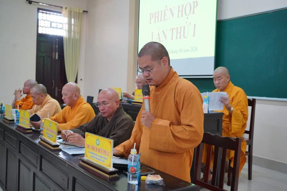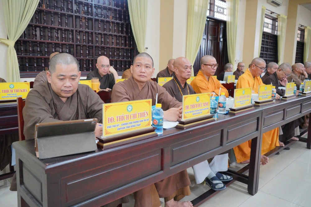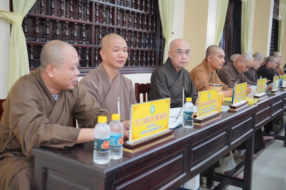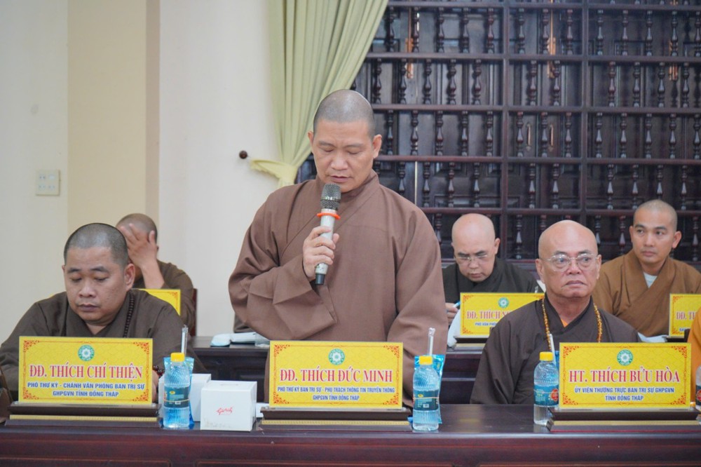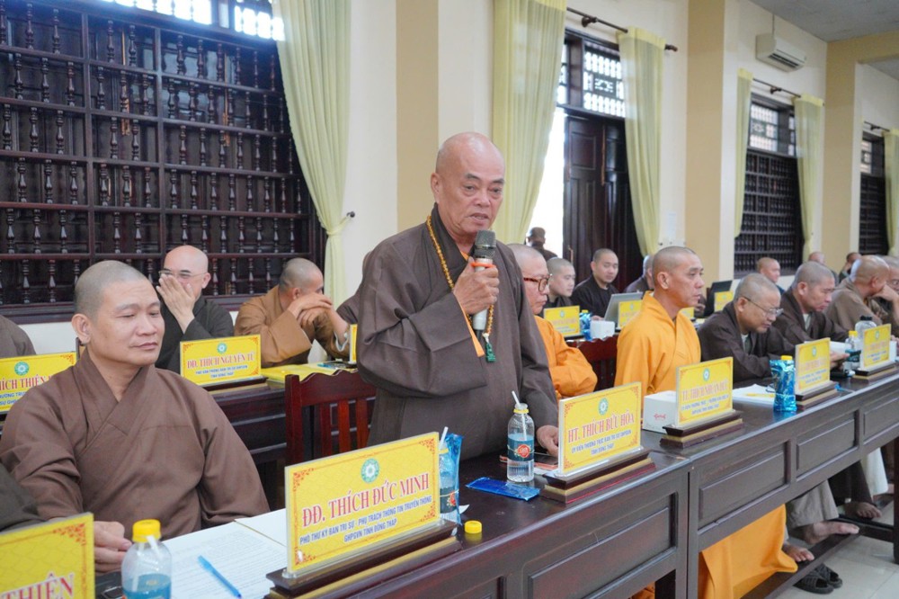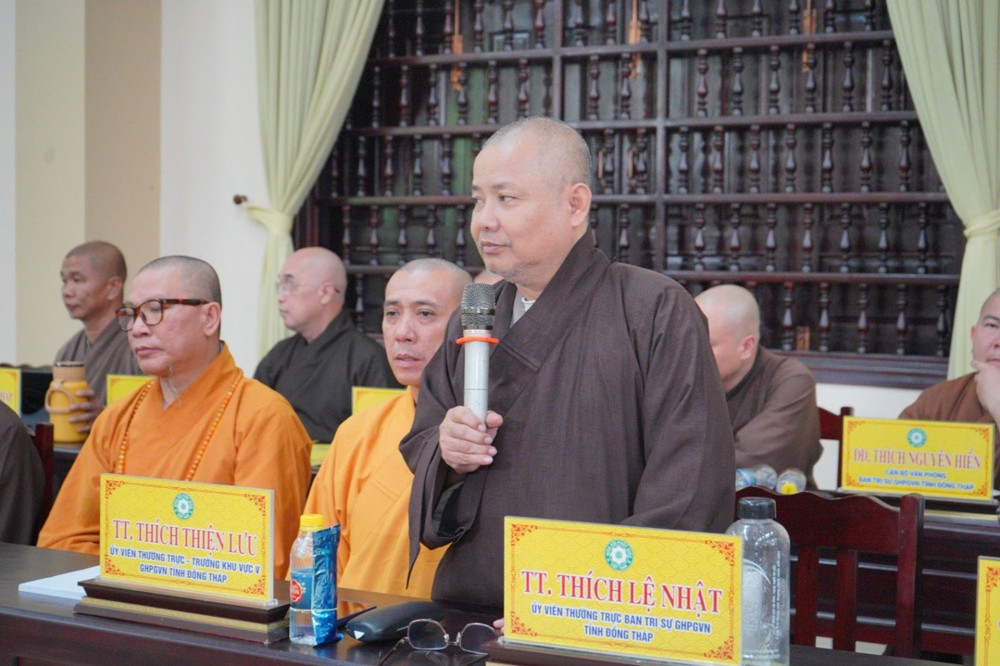 Phát biểu khai mạc, Thượng tọa Trưởng ban Trị sự GHPGVN tỉnh Đồng Tháp cho biết, phiên họp sẽ được lắng nghe ban Thư ký báo cáo công tác tổ chức Đại hội Đại biểu Phật giáo tỉnh lần thứ nhất; đồng thời chư Tôn đức cùng quý đại biểu tập trung góp ý xây dựng Kế hoạch tổ chức Đại lễ Phật đản Phật lịch 2570 và khóa An cư Kiết hạ năm Bính Ngọ - 2026 để hai Phật sự này được tổ chức trang nghiêm và thành tựu viên mãn. Thượng tọa nhấn mạnh: Đây là 2 Phật sự quan trọng thường niên của tăng đoàn Phật giáo nói chung và của BTS Phật giáo tỉnh Đồng Tháp, vì vậy rất cần sự đoàn kết góp ý thực hiện của chư Tôn đức Tăng Ni.