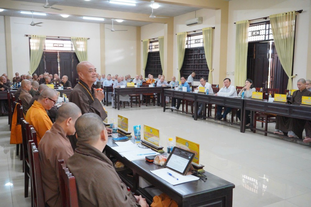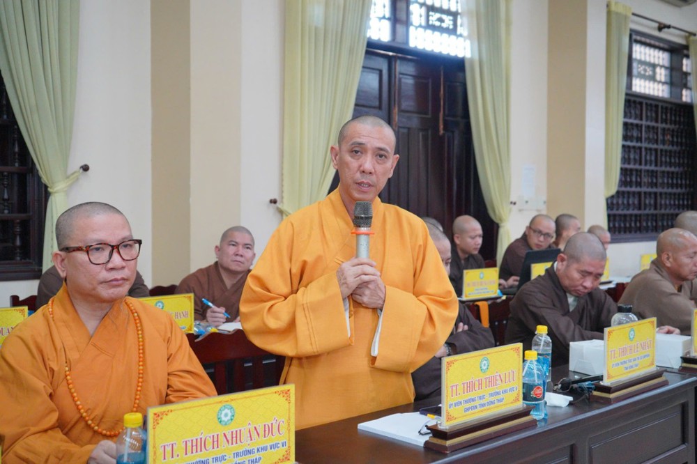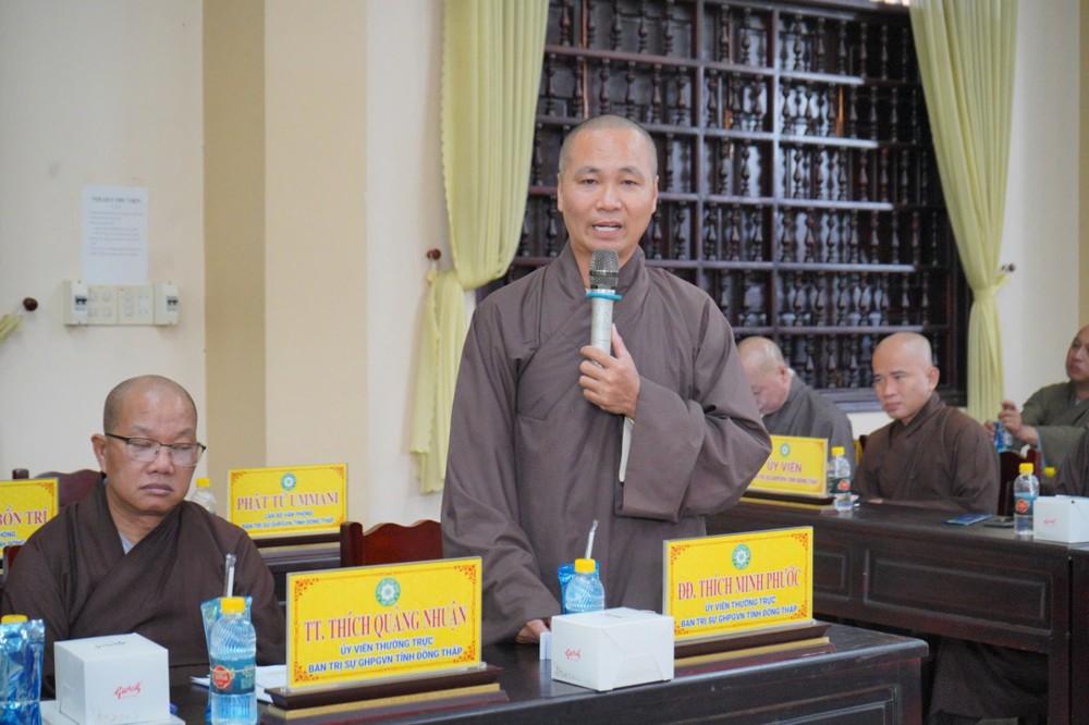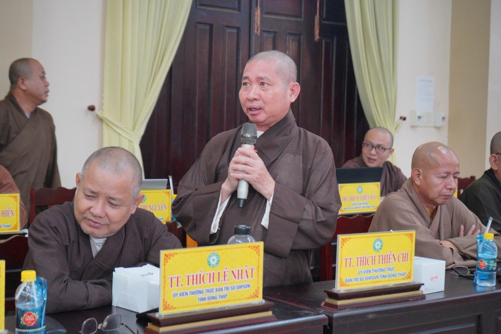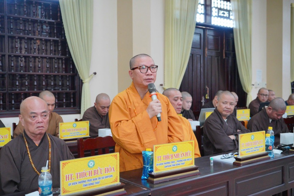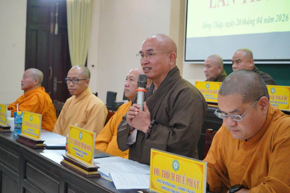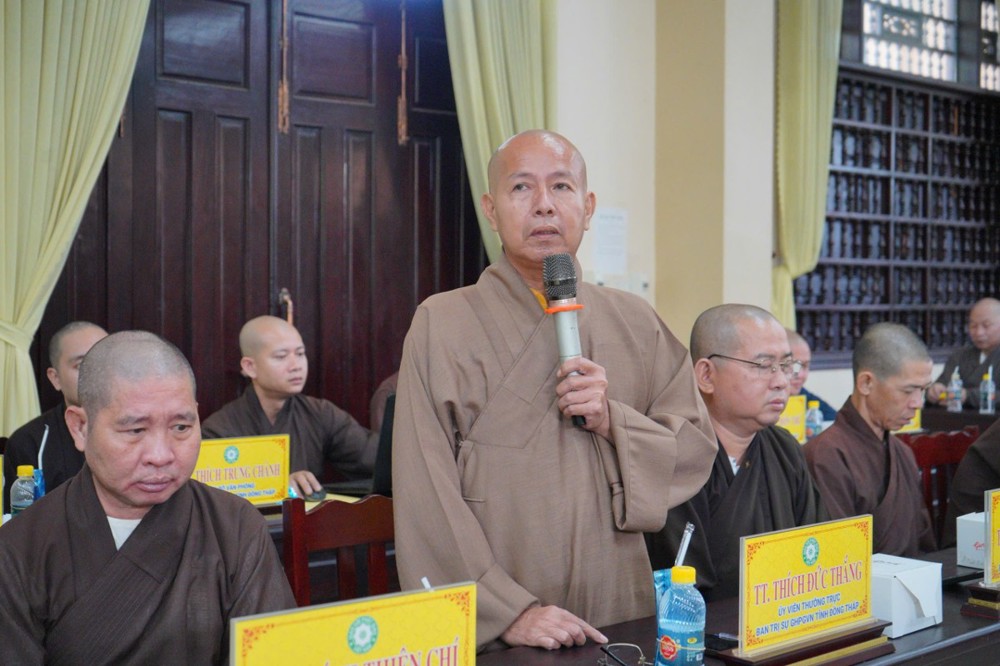 Phát biểu khai mạc, Thượng tọa Trưởng ban Trị sự GHPGVN tỉnh Đồng Tháp cho biết, phiên họp sẽ được lắng nghe ban Thư ký báo cáo công tác tổ chức Đại hội Đại biểu Phật giáo tỉnh lần thứ nhất; đồng thời chư Tôn đức cùng quý đại biểu tập trung góp ý xây dựng Kế hoạch tổ chức Đại lễ Phật đản Phật lịch 2570 và khóa An cư Kiết hạ năm Bính Ngọ - 2026 để hai Phật sự này được tổ chức trang nghiêm và thành tựu viên mãn. Thượng tọa nhấn mạnh: Đây là 2 Phật sự quan trọng thường niên của tăng đoàn Phật giáo nói chung và của BTS Phật giáo tỉnh Đồng Tháp, vì vậy rất cần sự đoàn kết góp ý thực hiện của chư Tôn đức Tăng Ni.
