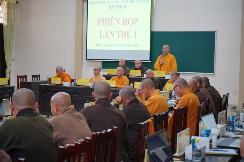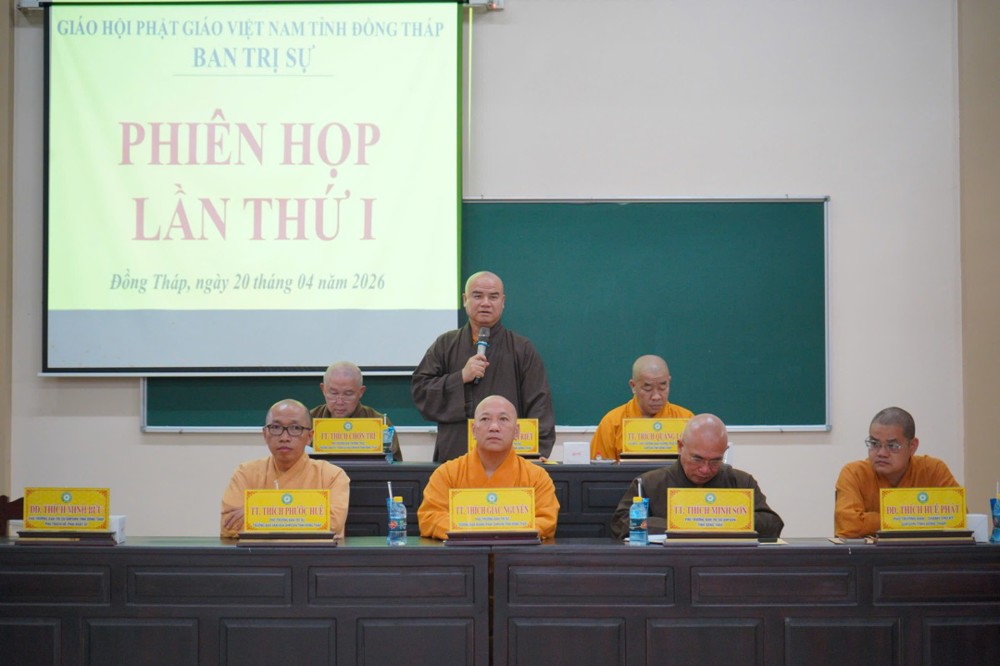 PSO – Buổi chiều ngày 20/4/2026, Ban Trị sự GHPGVN tỉnh Đồng Tháp nhiệm kỳ 2026 – 2031 tổ chức phiên họp đầu tiên nhằm báo cáo tổng kết công tác Đại hội và triển khai một số Phật sự quan trọng trong thời gian tới.