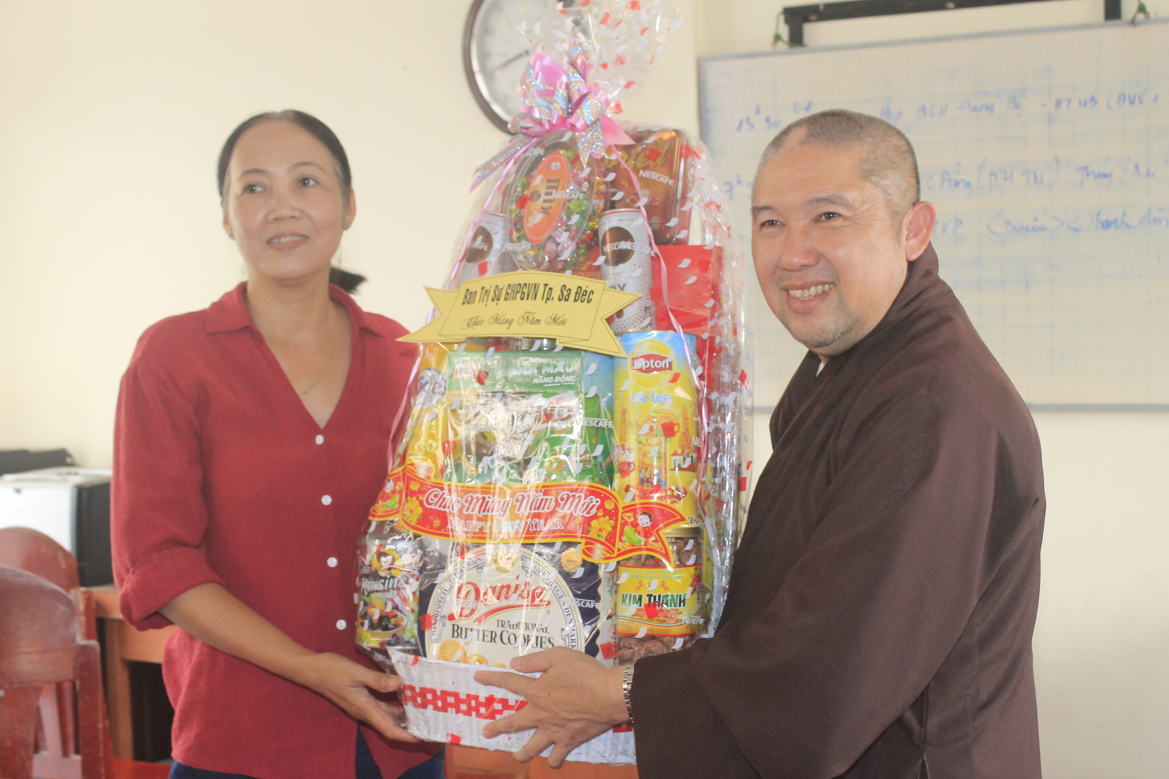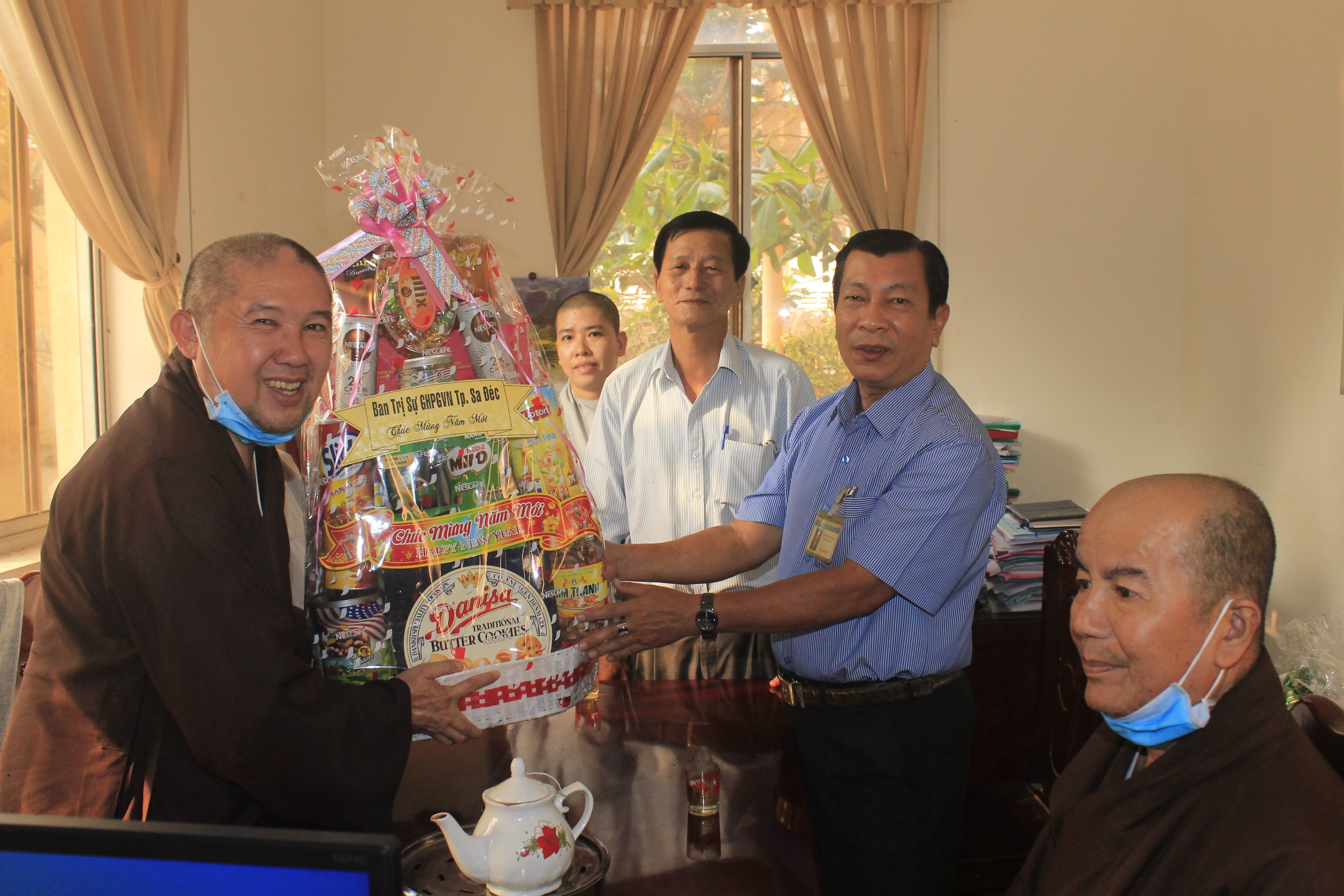 Đến thăm và chúc Tết, Thượng tọa Thích Chơn Trí - Phó ban Trị sự GHPGVN tỉnh Đồng Tháp, Trưởng ban Trị sự Phật giáo TP. Sa Đéc đã gửi lời chúc mừng Đảng ủy, Hội đồng Nhân dân (HĐND), Ủy ban Nhân dân (UBND), Ủy ban Mặt trận Tổ quốc Việt Nam (UB MTTQVN) phường 1, 2, 3, 4; phường Tân Quy Đông, An Hòa và xã Tân Quy Tây, Tân Khánh Đông, Tân Phú Đông đã đạt được kết quả phát triển toàn diện về kinh tế, văn hóa, chính trị trong năm 2020.