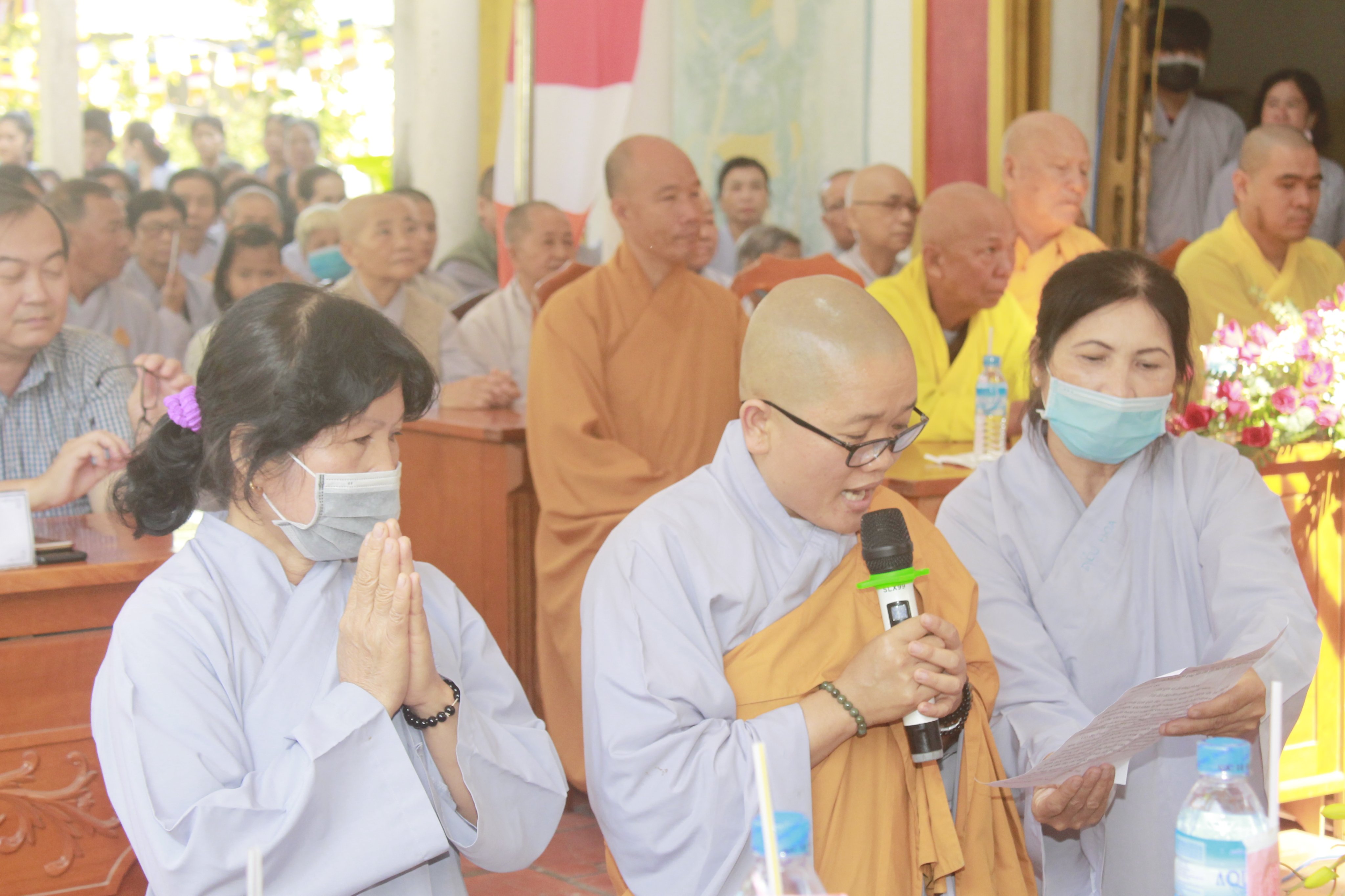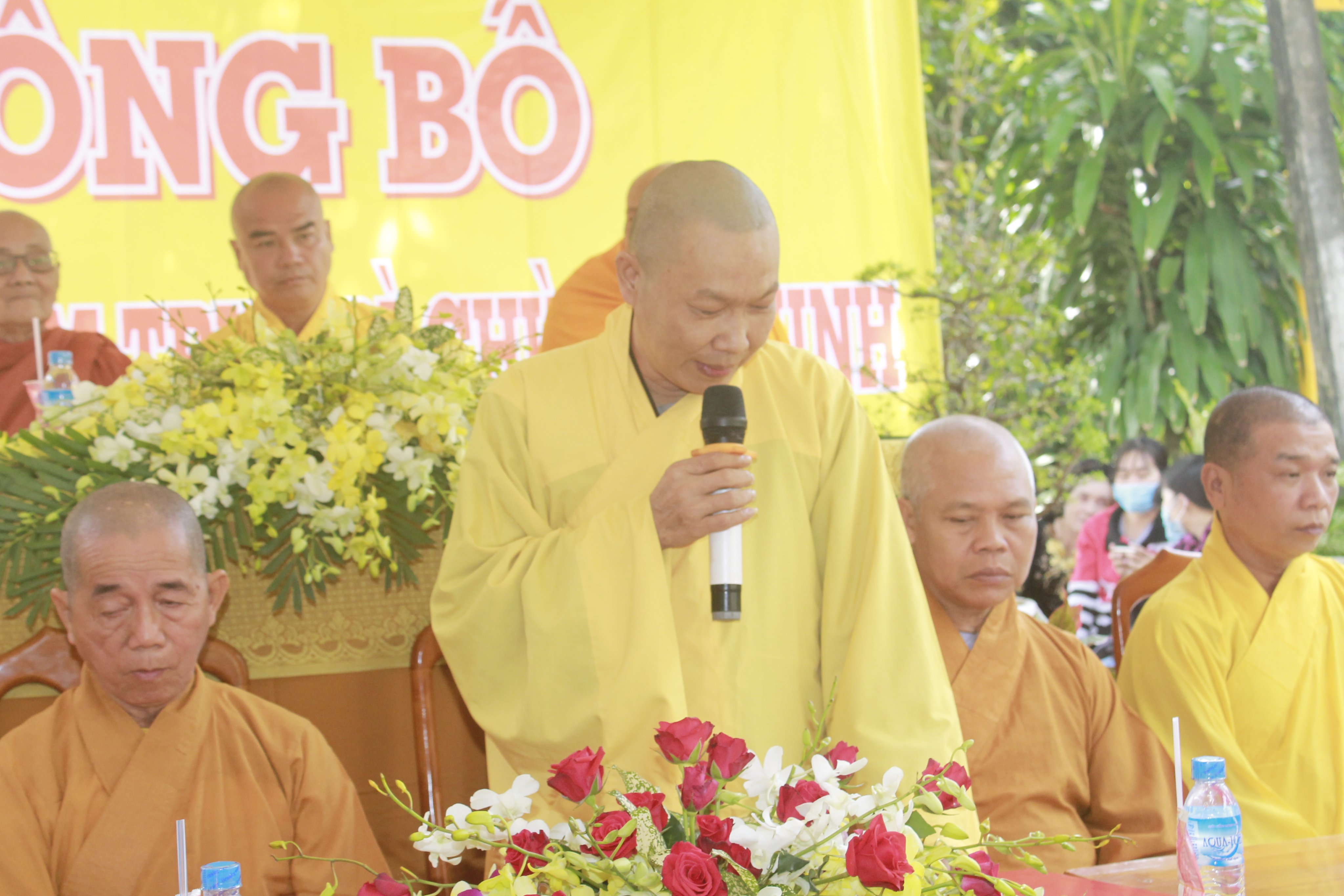 Thay mặt Ban chứng minh, Thường trực BTS GHPGVN tỉnh, TT. Thích Tĩnh Triệt đã ban đạo từ và nhấn mạnh về trọng trách của một vị trụ trì là chính yếu trong sự nghiệp, tạo niềm tin Phật pháp, để mọi người có cái nhìn tốt đẹp về đạo Phật để đưa Chánh pháp của Như Lai đi vào đời sống. Thượng tọa có gửi lời tri ân đến các cấp lãnh đạo chính quyền địa phương đã luôn quan tâm, tạo điều kiện giúp đỡ cho Sư cô Tân trụ trì trong thời gian qua, được hoàn thành trọng trách mà đạo pháp giao phó.