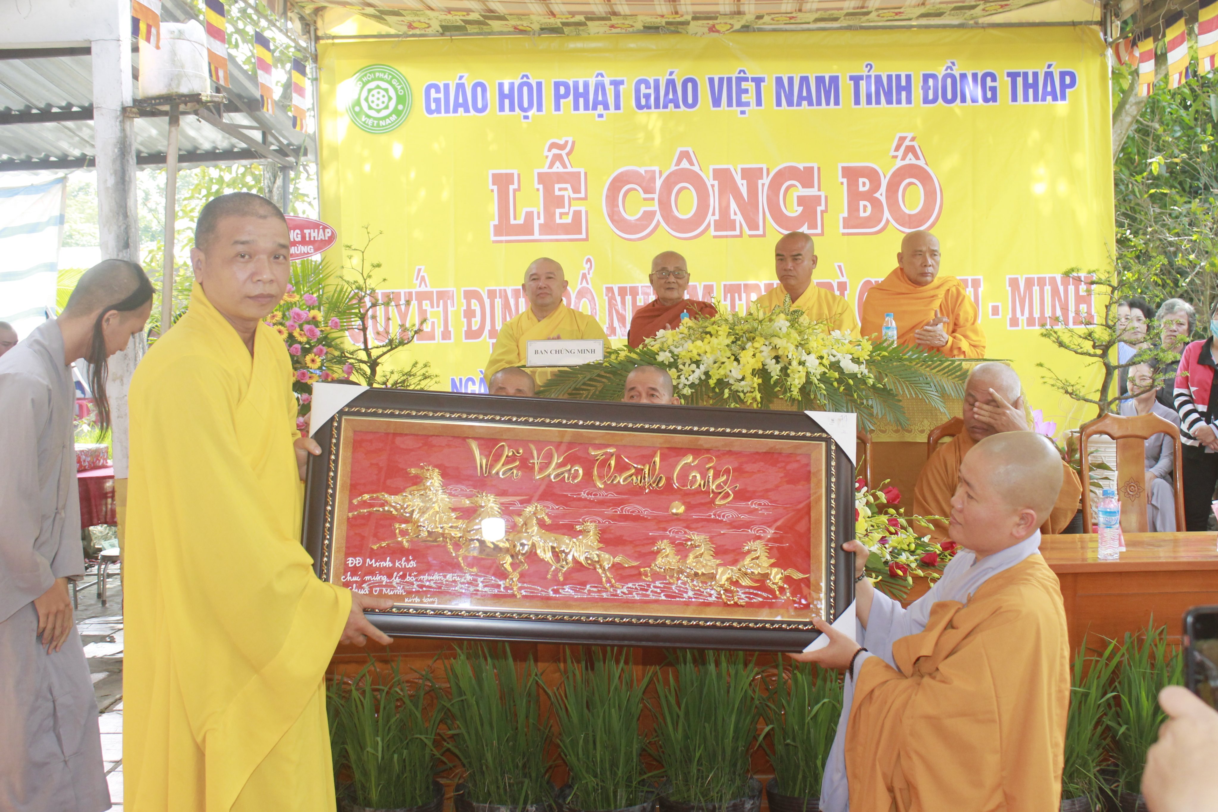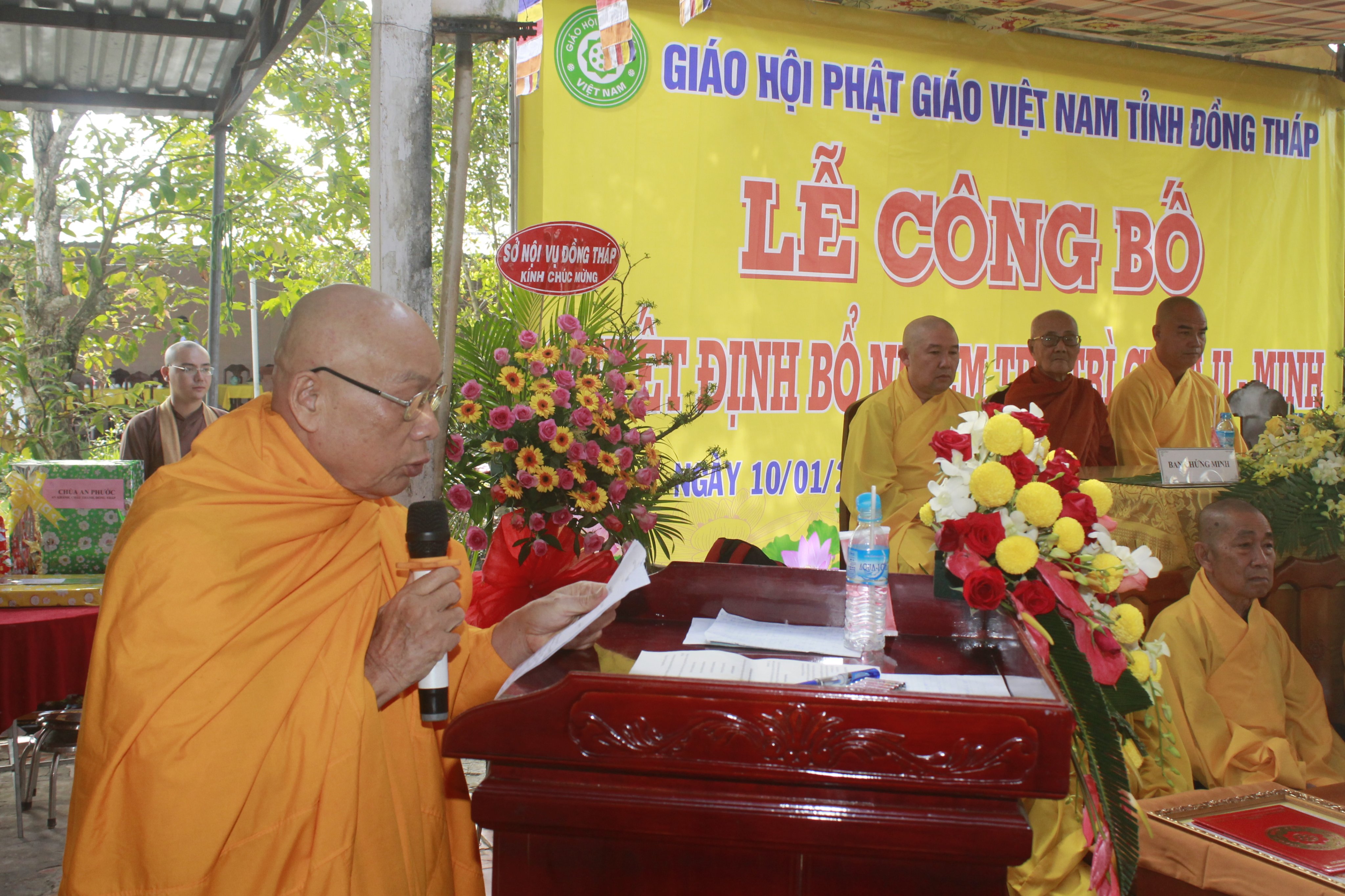 Tiếp đến, Đại đức Thích Chơn Tâm - Chánh Thư ký Ban Trị sự GHPGVN tỉnh Đồng Tháp, thay mặt Ban Thường trực đọc quyết định bổ nhiệm Sư cô TN. Tâm Như (thế danh Lê Thị Thu, sinh năm 1973) giữ nhiệm vụ trụ trì chùa U Minh, huyện Lấp Vò, tỉnh Đồng Tháp, có trách nhiệm điều hành các công tác Phật sự và giữ gìn giáo sản tại cơ sở tự viện theo đúng Hiến chương Giáo hội và Pháp luật Nhà nước.