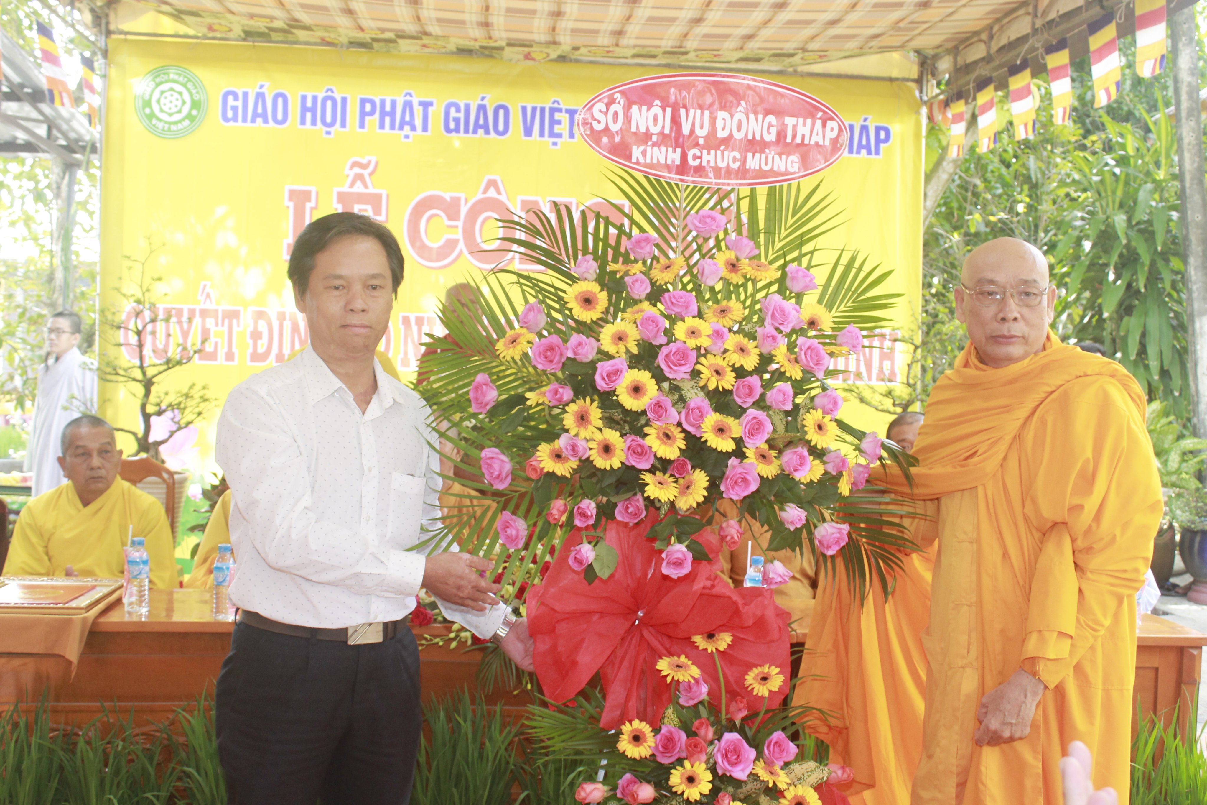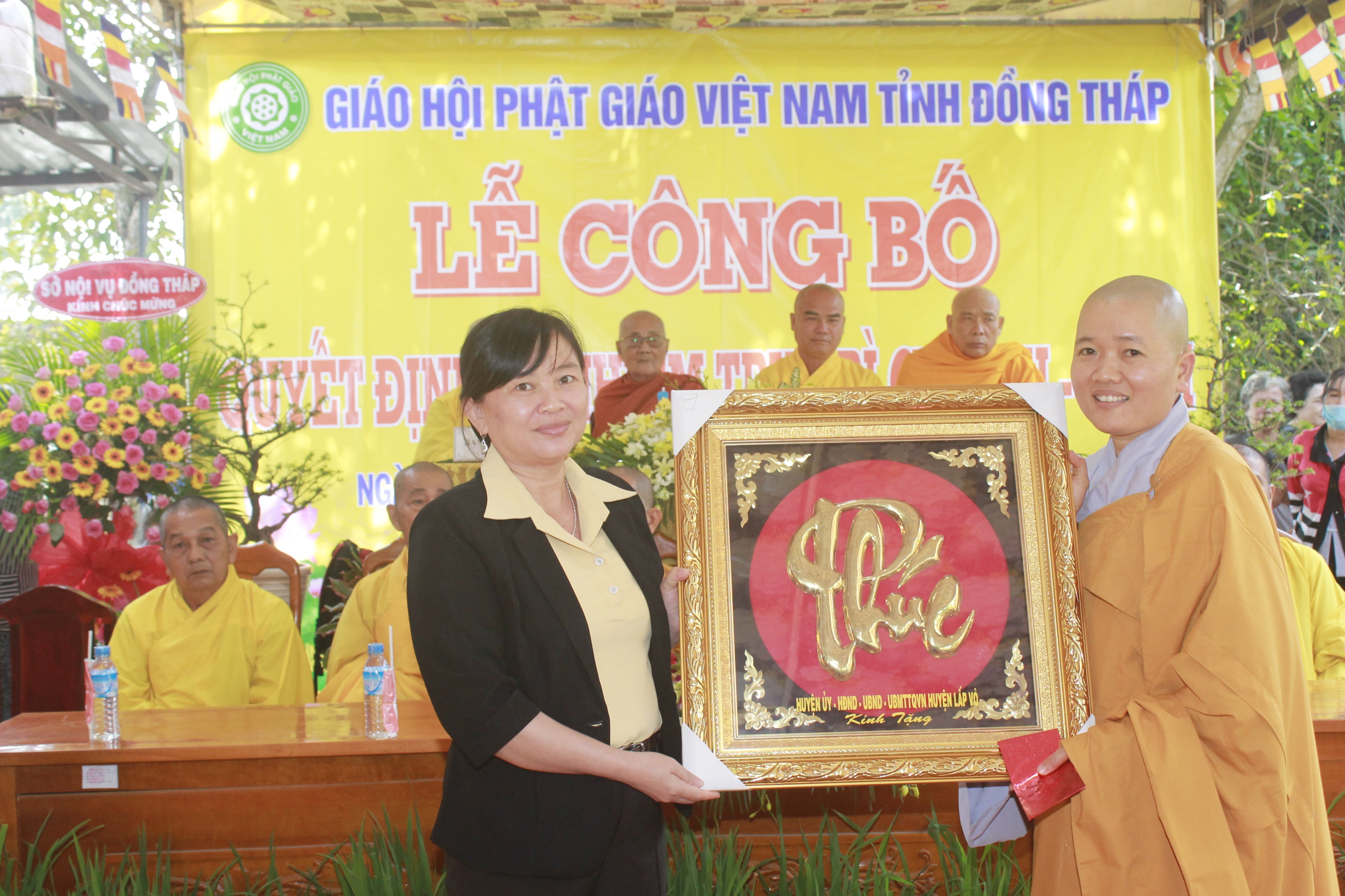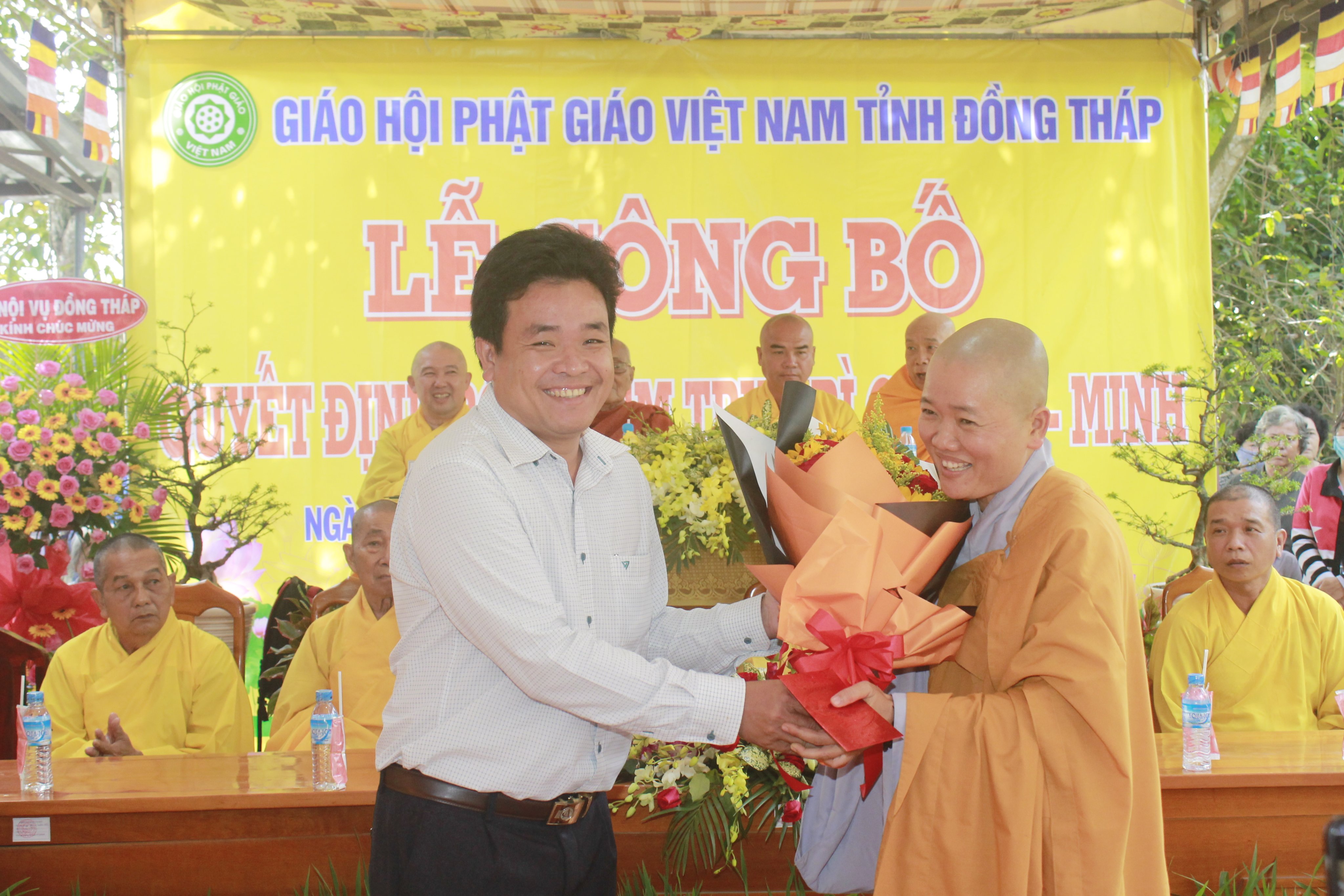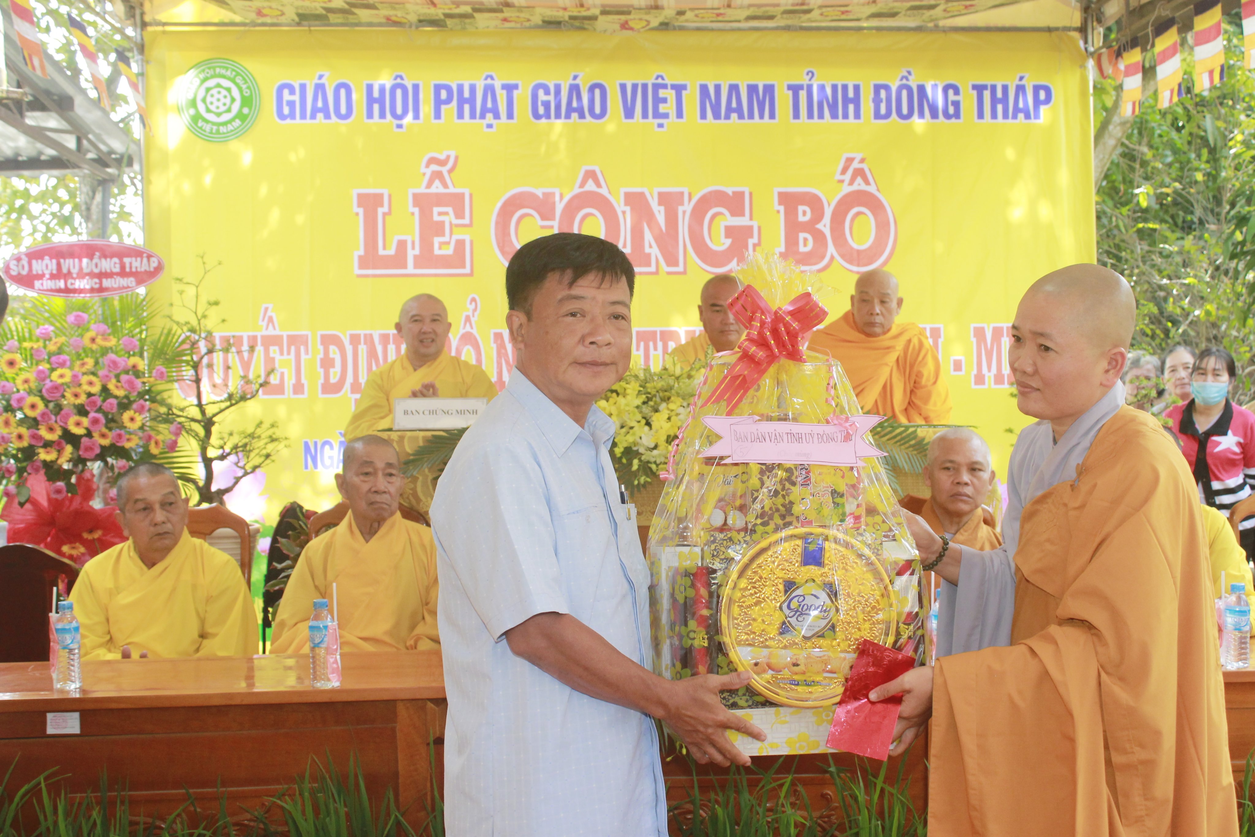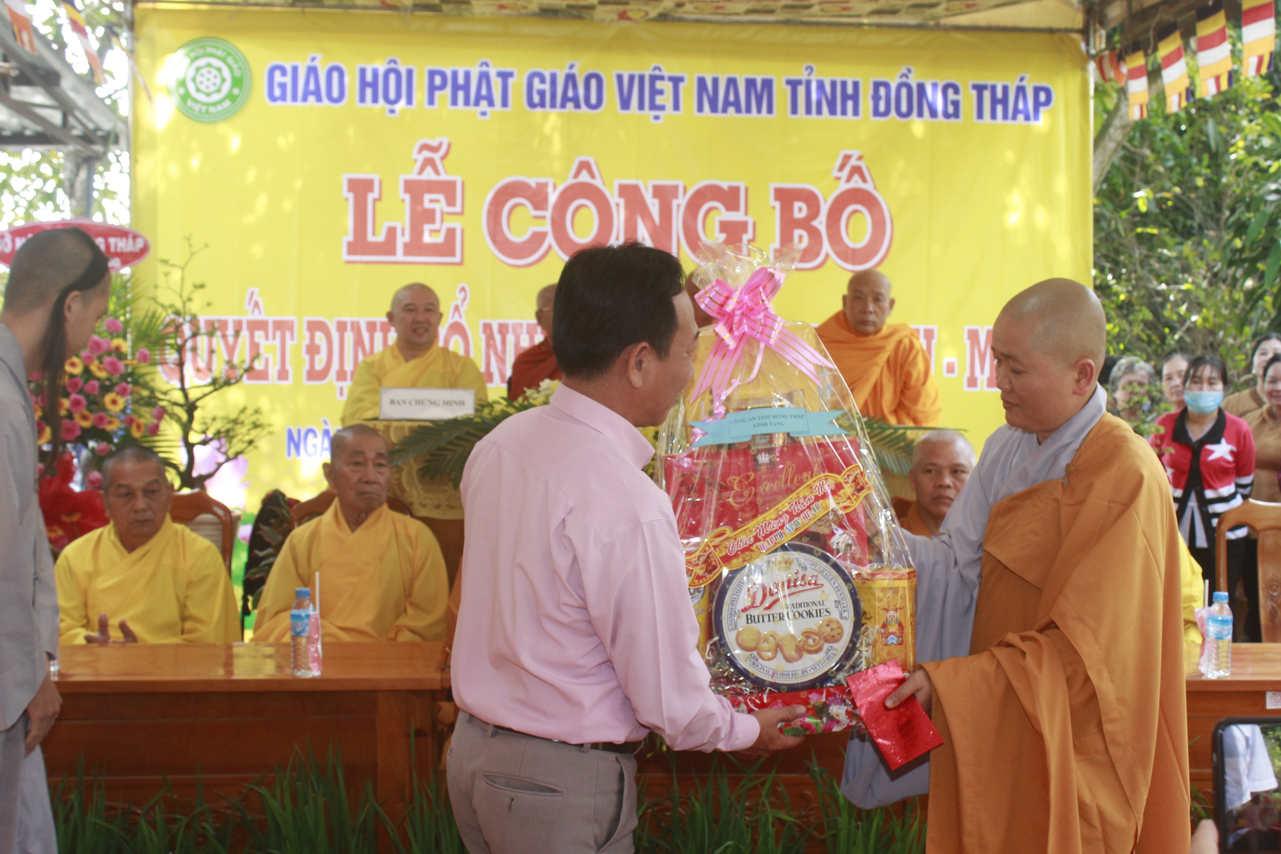 Về phía chánh quyền có: Ông Võ Hoàng Cương - Tỉnh ủy viên, Phó Chủ tịch Thường trực Ủy ban Mặt trận Tổ quốc Việt Nam (UBMTTQVN) tỉnh Đồng Tháp; ông Phạm Hoàng Phương - Trưởng phòng Tôn giáo Dân tộc Tỉnh ủy Đồng Tháp; bà Trương Thị Diệp - Ủy viên Thường vụ, Phó Chủ tịch Ủy ban Nhân dân (UBND) huyện Lấp Vò; cùng các ông bà đại diện cơ quan, ban ngành tỉnh, huyện sở tại, và quý thiện nam tín nữ Phật tử đồng tham dự và tặng hoa chúc mừng.
