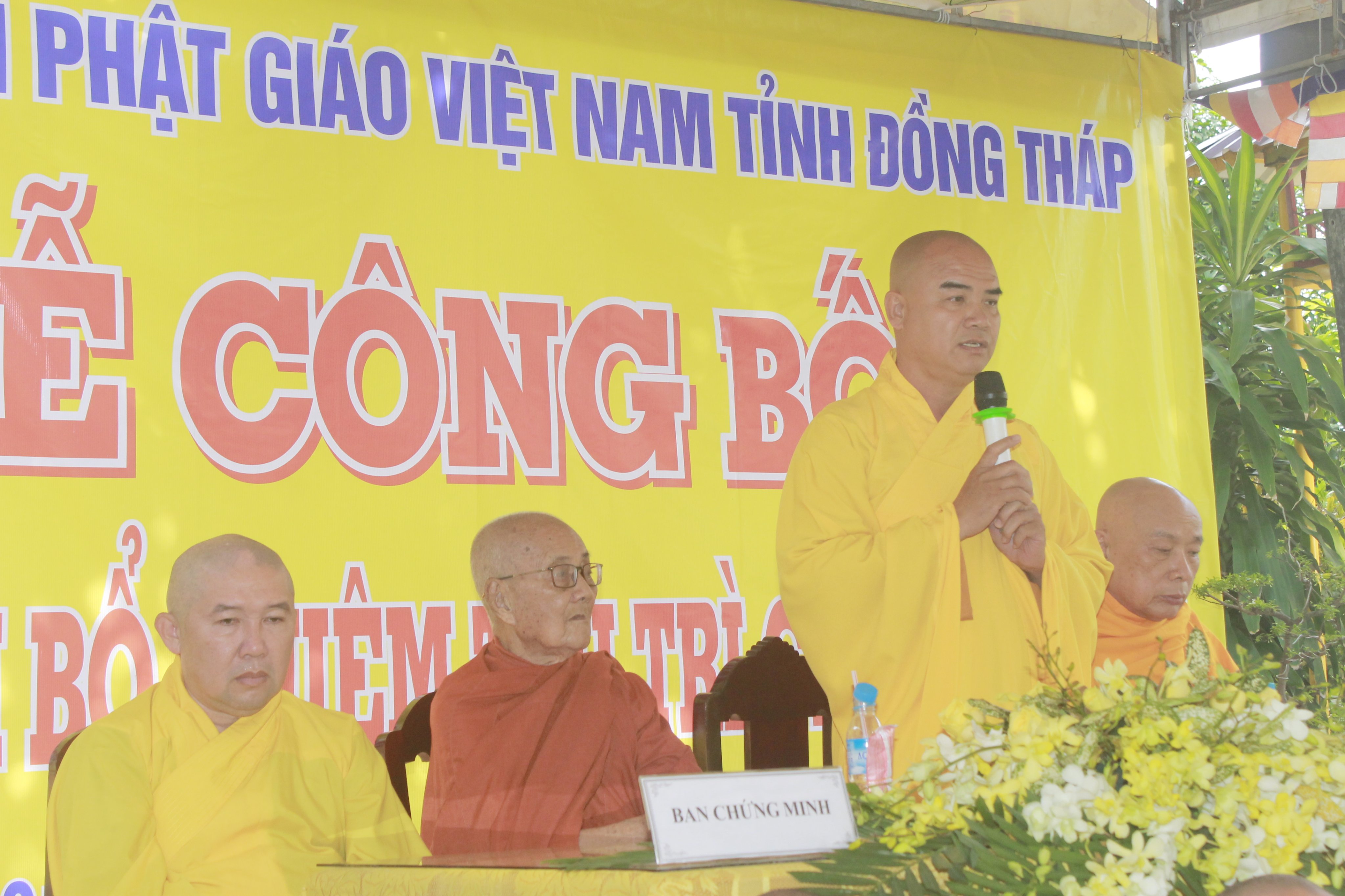 Thượng tọa Thích Huệ Thủ - Trưởng BTC phát biểu khai mạc buổi lễ bổ nhiệm trụ trì chùa U Minh. Trải qua nhiều năm, từ khi cố HT. Thích Bửu Minh viên tịch đến nay chưa có người kế nhiệm, Sư cô Thích nữ Tâm Như là đệ tử xuất gia đã chăm lo kinh kệ, nhang đèn tại bổn tự. Xét thấy cơ sở Phật giáo cần người kế thừa các công tác Phật sự tại địa phương, ổn định theo quy định Hiến chương và pháp luật. Được sự chấp thuận của Ban Trị sự GHPGVN tỉnh và các cơ quan ban ngành tỉnh Đồng Tháp, chính thức bổ nhiệm cho Sư cô Thích nữ Tâm Như - trụ trì chùa U Minh, xã Long Hưng A, huyện Lấp Vò, tỉnh Đồng Tháp.