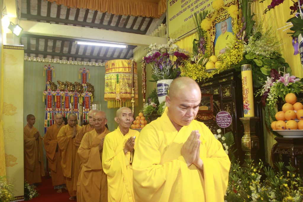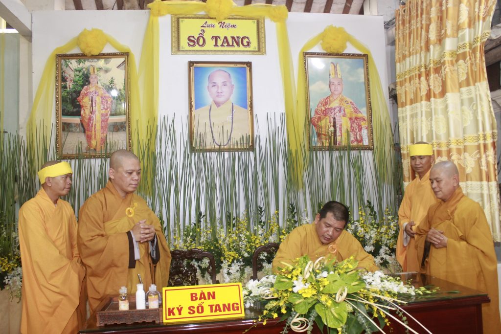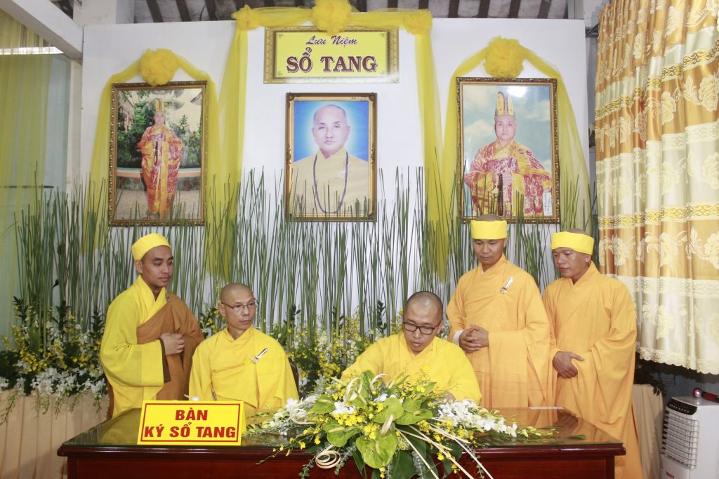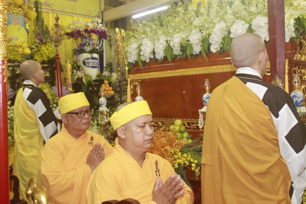Trước Giác linh đài, chư Tôn đức Tăng Ni và quý Phật tử xa gần đồng trở về niêm hương kính viếng, niệm danh hiệu Phật, đảnh lễ Giác linh cố Đại lão Hòa thượng trong sự kính tiếc vô bờ, cũng như gửi lời chia buồn cùng Môn nhơn Pháp quyến, và phái đoàn đã hữu nhiễu kim quan, ký sổ tang lưu niệm.