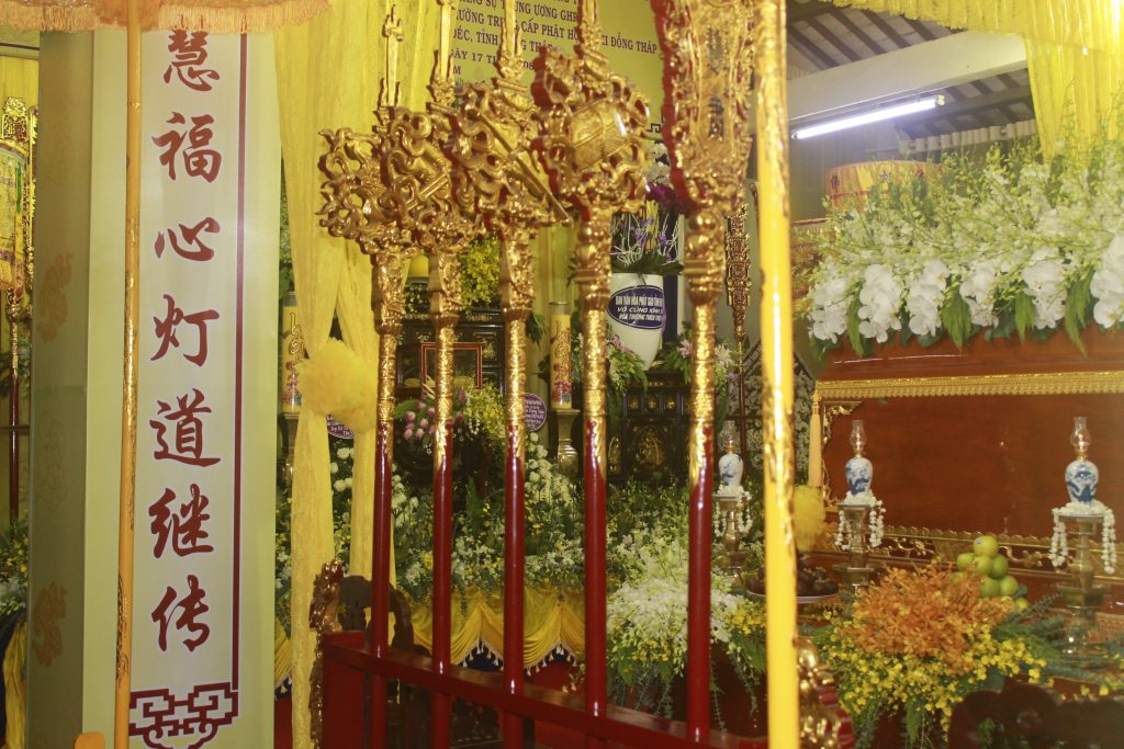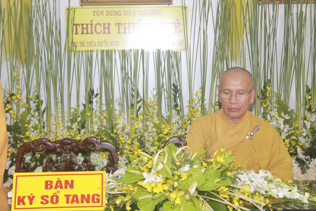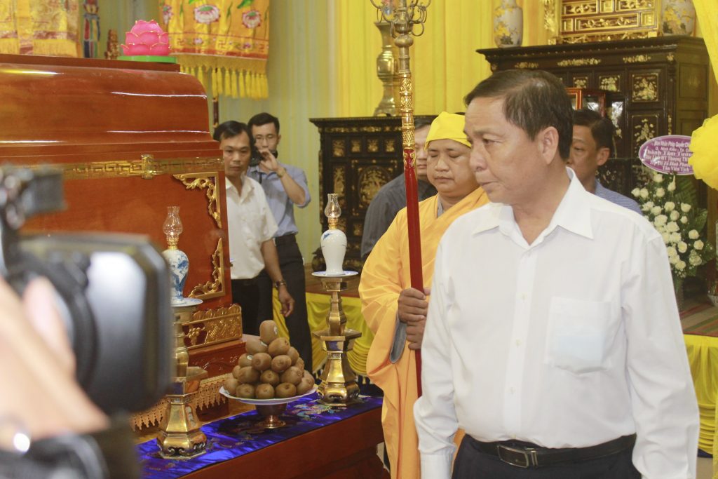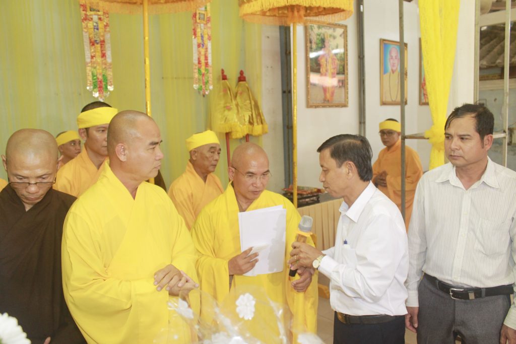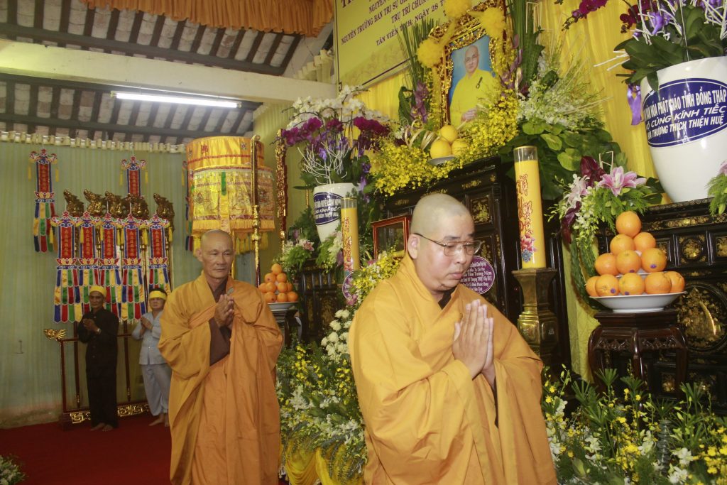 Trang nghiêm lễ viếng, chư Tôn đức đại diện Ban Thường trực thay mặt đoàn dâng lời ai điếu. Từ nay Phật giáo Đồng Tháp vắng bóng Hòa thượng, bậc Thạch trụ Thiền gia, là điểm tựa tinh thần cao quý cho Tăng Ni noi gương tu học, BTS Phật giáo tỉnh mất đi người lãnh đạo luôn tận tụy hết mình vì sự phát triển của Đạo pháp, Môn nhơn Pháp quyến mất đi người Thầy khả kính với tâm nguyện luôn tiếp dẫn hậu lai, báo Phật ân đức.