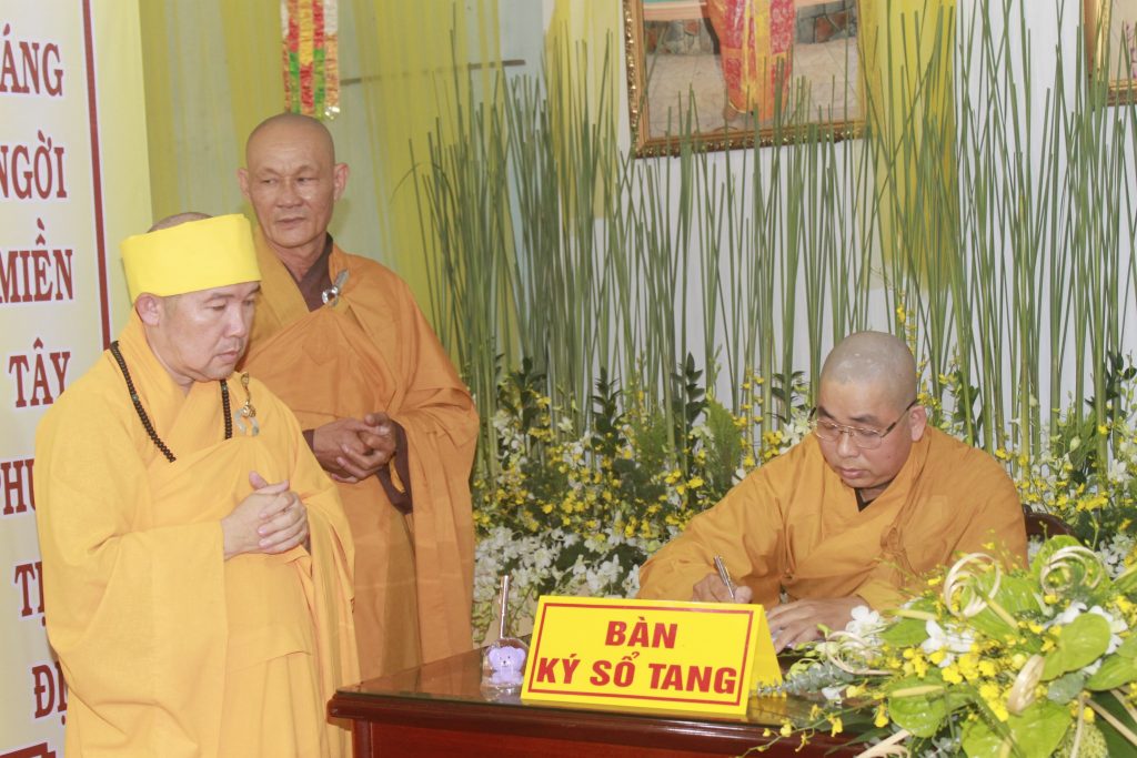 Chư Tôn đức các ban ngành trực thuộc PG tỉnh Đồng Tháp kính viếng Giác linh cố Đại lão Hòa thượng Thích Thiện Huệ và ghi vào sổ tang lưu niệm