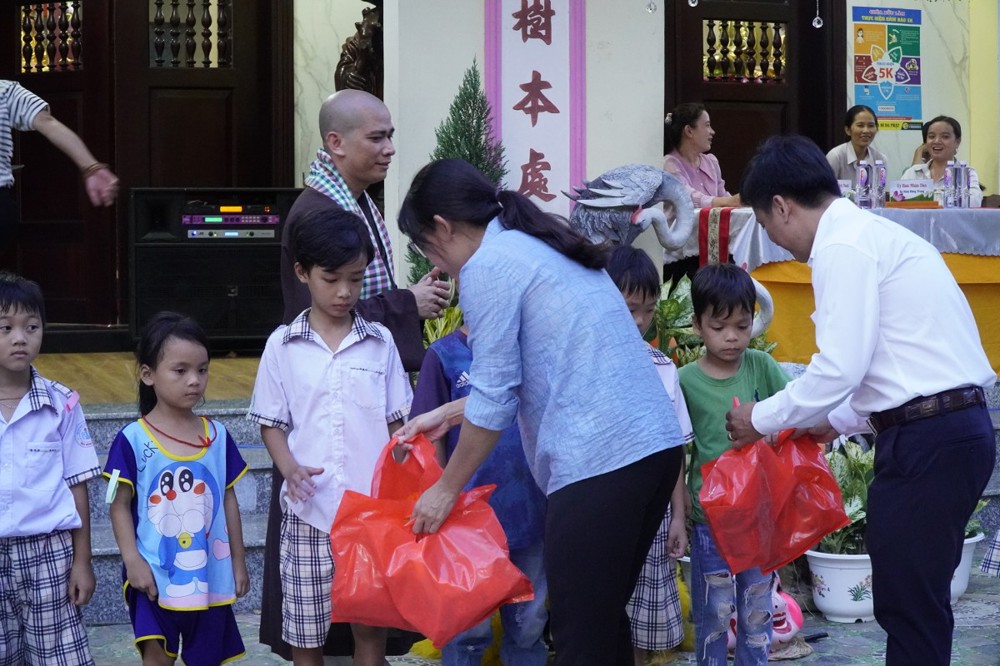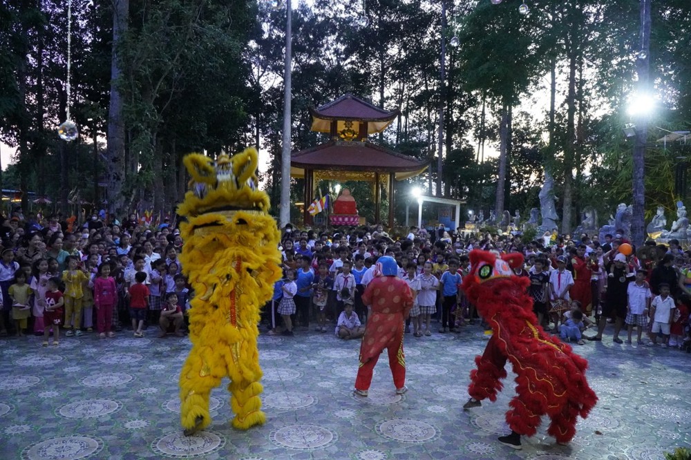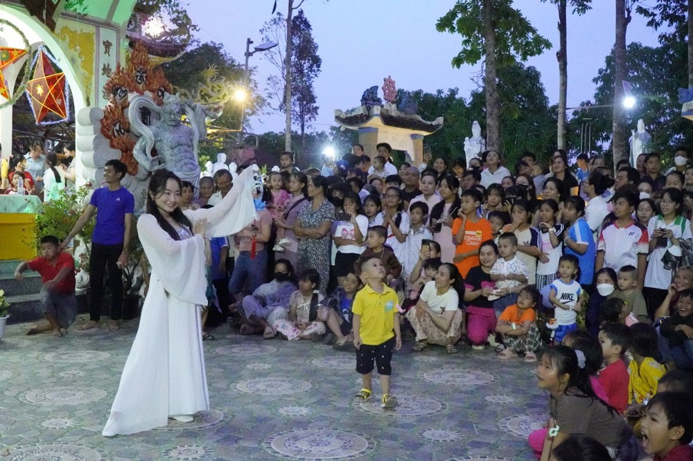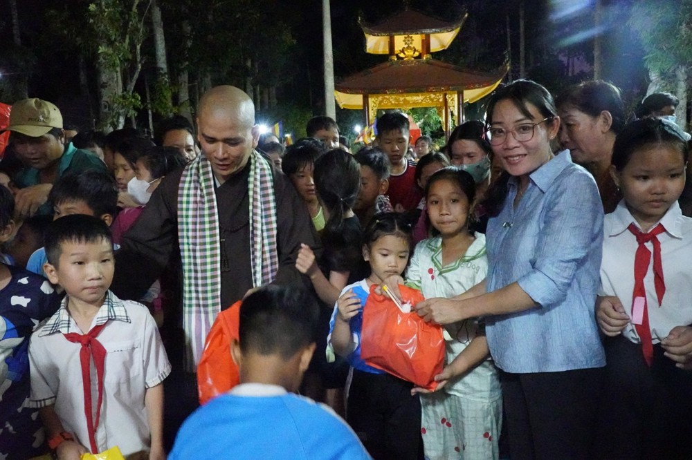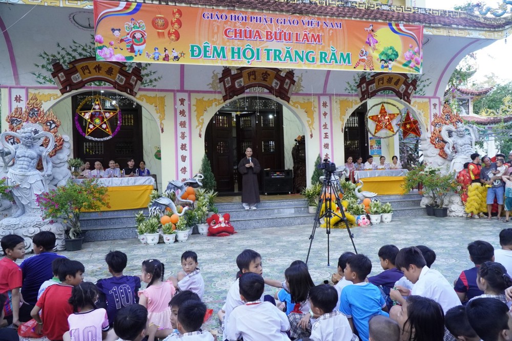 Phát biểu khai mạc Đại đức Thích Lệ Ngộ chia sẻ: “Mùa Trung thu là Tết đoàn viên, là dịp để lan tỏa tình yêu thương. Nhà chùa cùng chính quyền địa phương mong muốn mang đến cho các con một đêm hội ý nghĩa, một chút quà nhỏ để động viên các con tiếp tục nỗ lực vượt qua khó khăn, trở thành những người con hiếu thảo, trò giỏi, mai sau đóng góp xây dựng cho quê hương đất nước.”