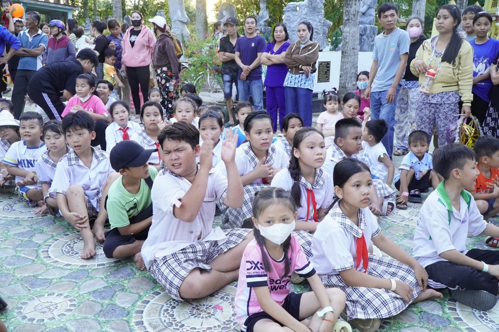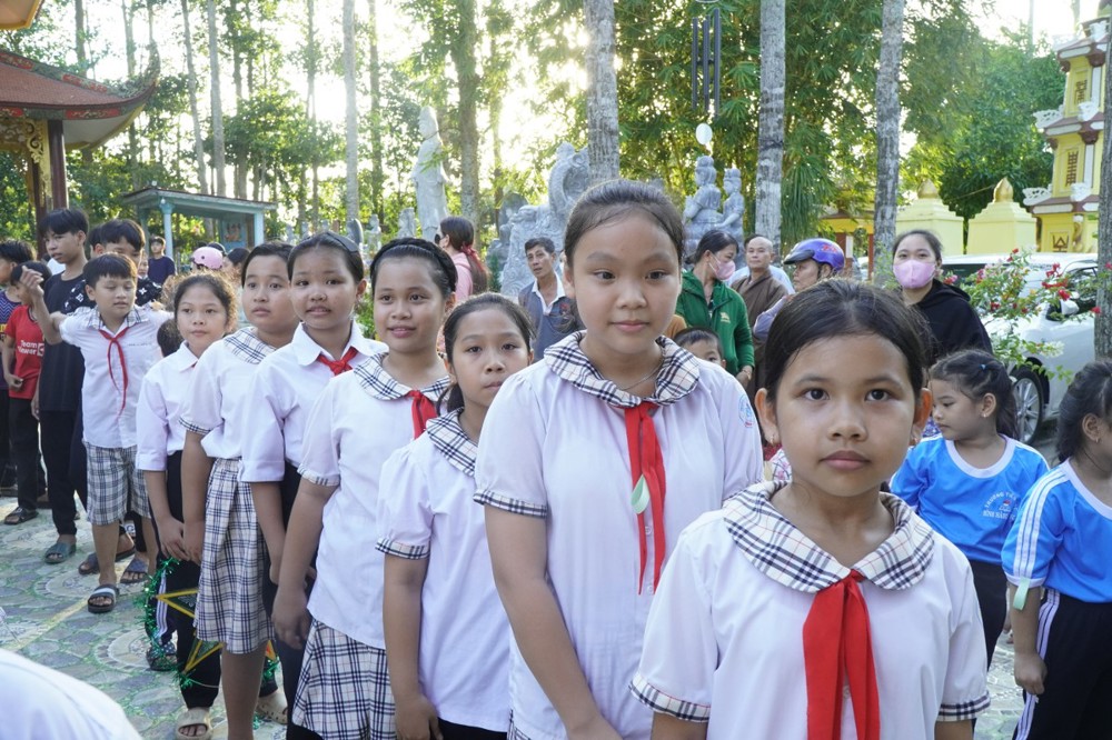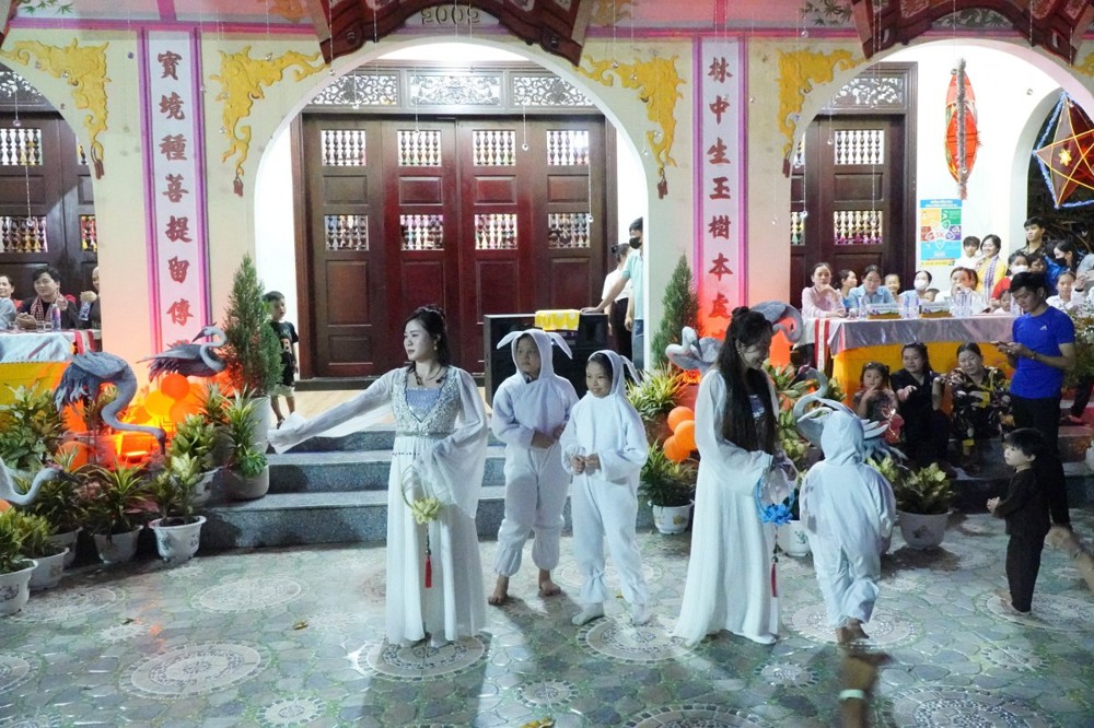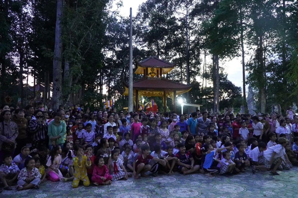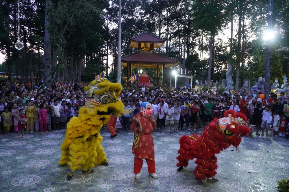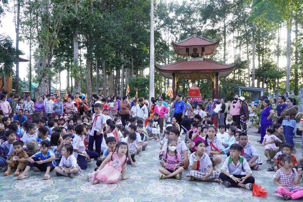Phát biểu khai mạc Đại đức Thích Lệ Ngộ chia sẻ: “Mùa Trung thu là Tết đoàn viên, là dịp để lan tỏa tình yêu thương. Nhà chùa cùng chính quyền địa phương mong muốn mang đến cho các con một đêm hội ý nghĩa, một chút quà nhỏ để động viên các con tiếp tục nỗ lực vượt qua khó khăn, trở thành những người con hiếu thảo, trò giỏi, mai sau đóng góp xây dựng cho quê hương đất nước.”