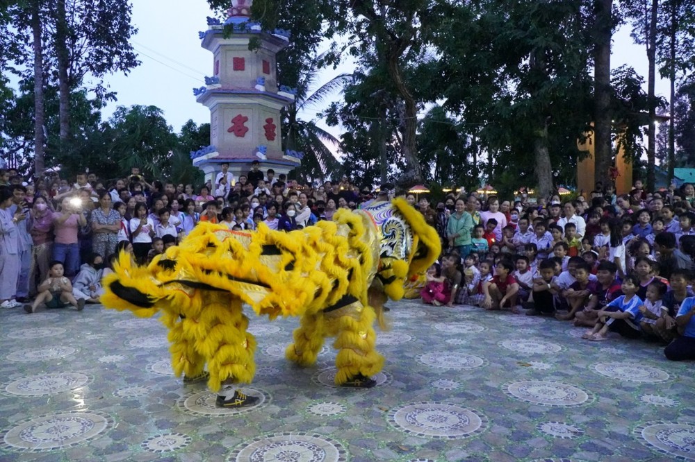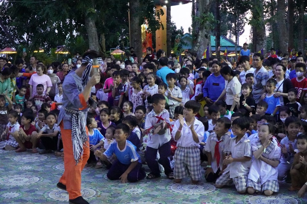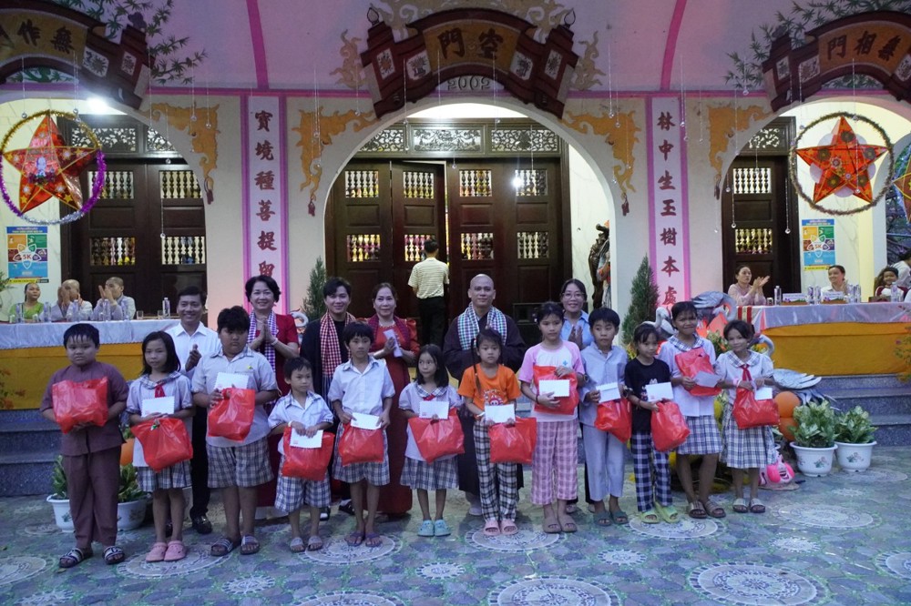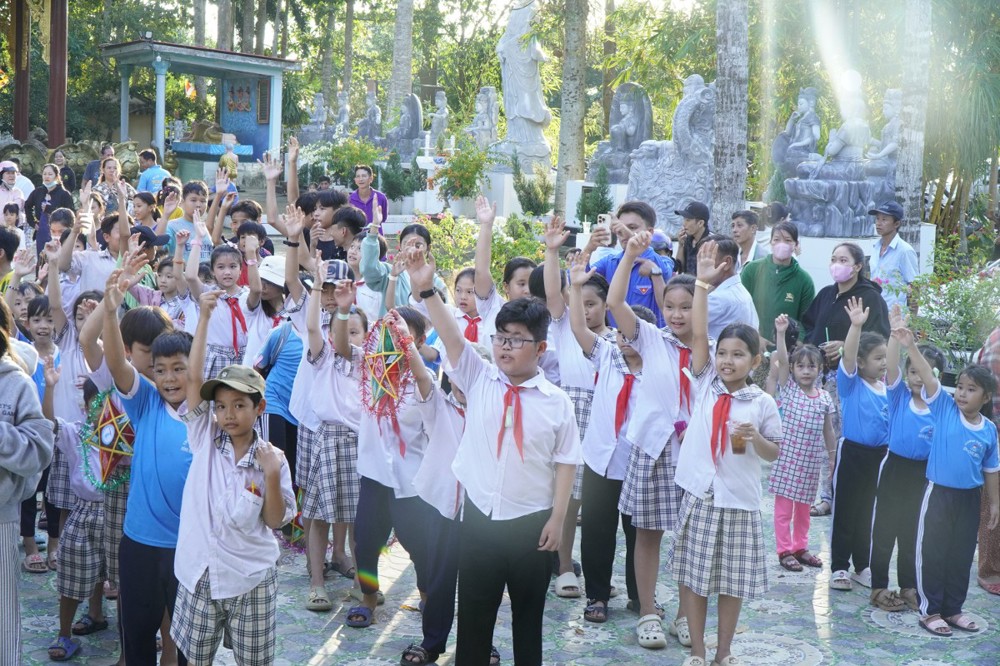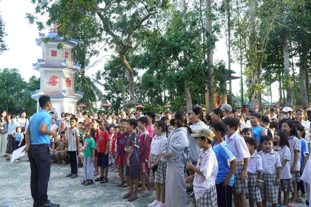 PSO - Ngày 6/10/2025, hằm tạo sân chơi bổ ích, mang đến niềm vui và tiếp thêm động lực cho các em học sinh có hoàn cảnh khó khăn đạt thành tích tốt trong học tập, chùa Bửu Lâm (xã Bình Hàng Trung, tỉnh Đồng Tháp) đã phối hợp cùng chính quyền địa phương tổ chức chương trình “Đêm hội Trăng rằm” – trao 50 suất Học bổng và 1.000 phần quà cho Thiếu nhi.