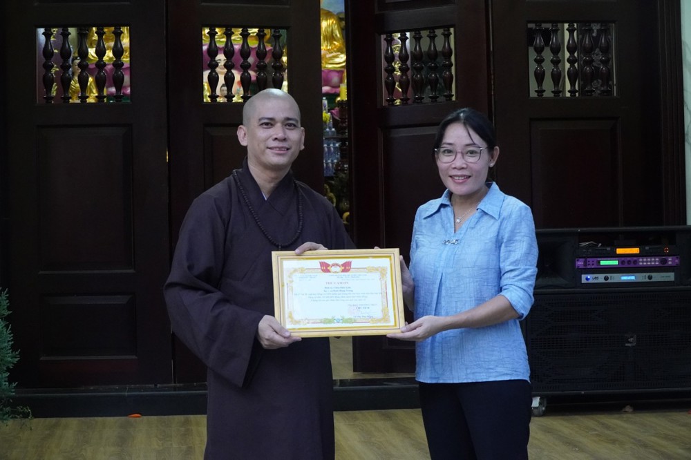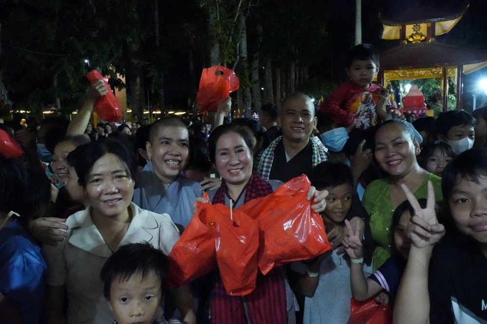 Sau lời phát biểu khai mạc đầy ý nghĩa của Đại đức Thích Lệ Ngộ và lời chúc mừng từ đại diện chính quyền địa phương, Ban Tổ chức đã trân trọng trao thư cảm ơn và quà lưu niệm đến các “mạnh thường quân” đã tài trợ, góp phần làm nên thành công của đêm hội.