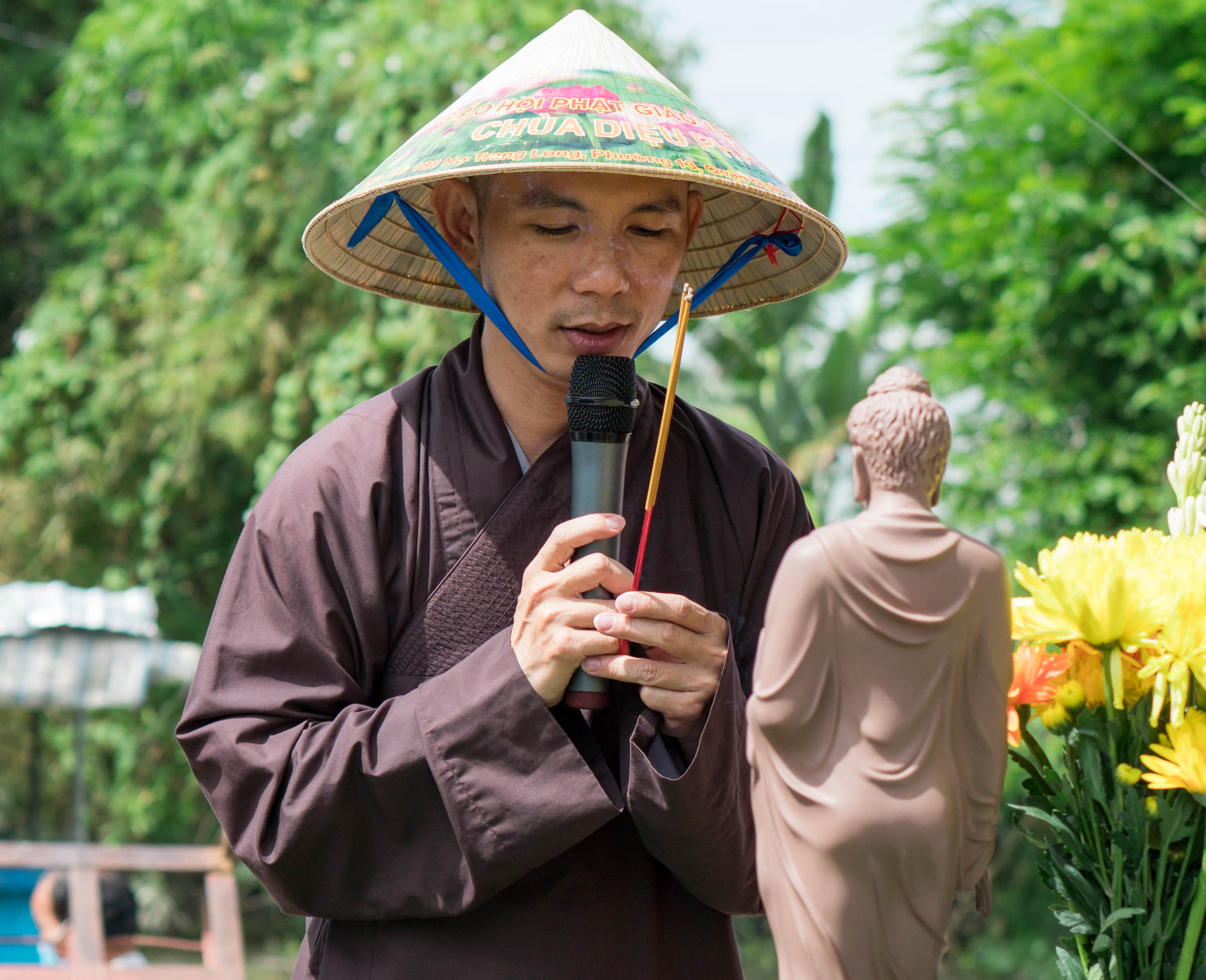 Tham dự buổi lễ có ĐĐ. Thích Nguyên Bình - Phó trụ trì kiêm Chủ nhiệm Đạo tràng chùa Diệu Pháp; ĐĐ. Thích An Đạt - Phó chủ nhiệm Đạo tràng; Phật tử Tâm Đạo - Phó ban Liên lạc Đạo tràng chùa Diệu Pháp cùng các Phật tử trong đạo tràng tháp tùng theo đoàn.