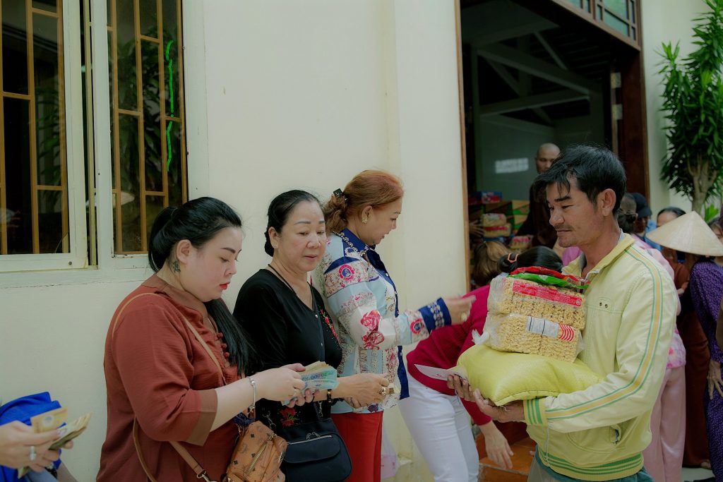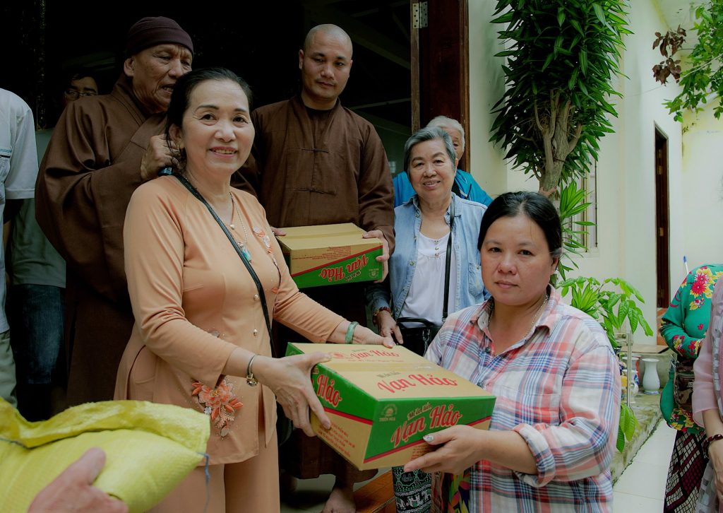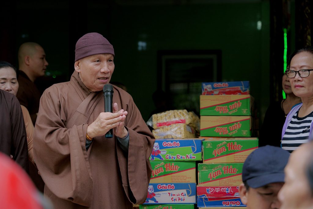 Thấu được lẽ đó, Hòa thượng đã vận động các nhà hảo tâm, mạnh thường quân và quý Phật tử xa gần chung tay tổ chức chuyến từ thiện để trao 200 phần quà cho bà con nơi vùng lũ dâng cao.