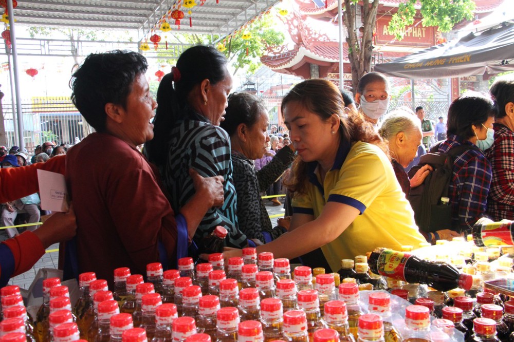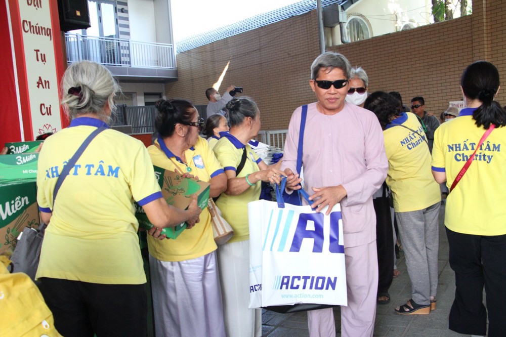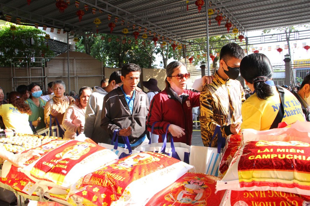 Buổi phát quà có sự tham dự của Ni sư Thích Nữ Như Lan – Trụ trì chùa Hưng Thiền; Phật tử Trần Thị Nhật Thanh – Trưởng phái đoàn Nhất Tâm Charity, tại TP.HCM; Gia đình Phật tử Đức Nguyên - Liên Huệ TP.HCM cùng chư Ni; đoàn Nhất Tâm Charity, bà con có hoàn cảnh khó khăn và người khiếm thị.