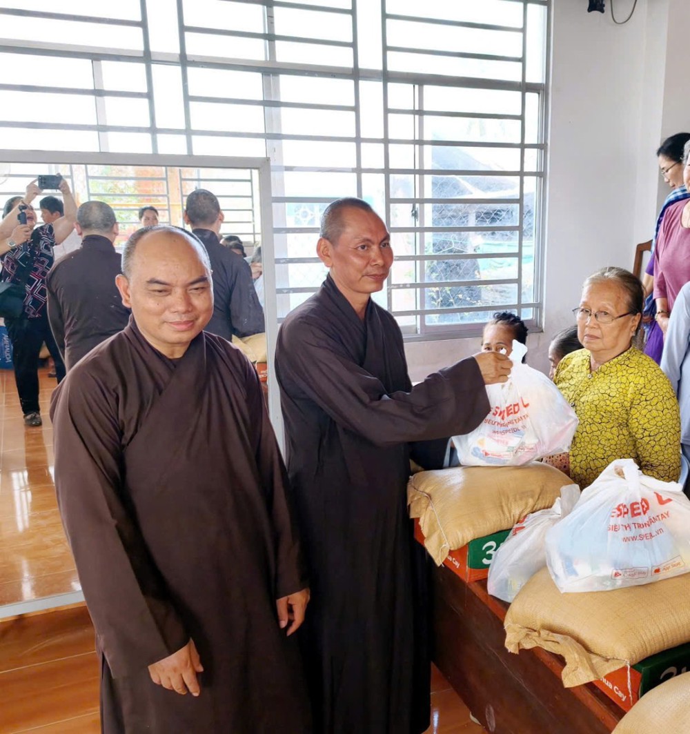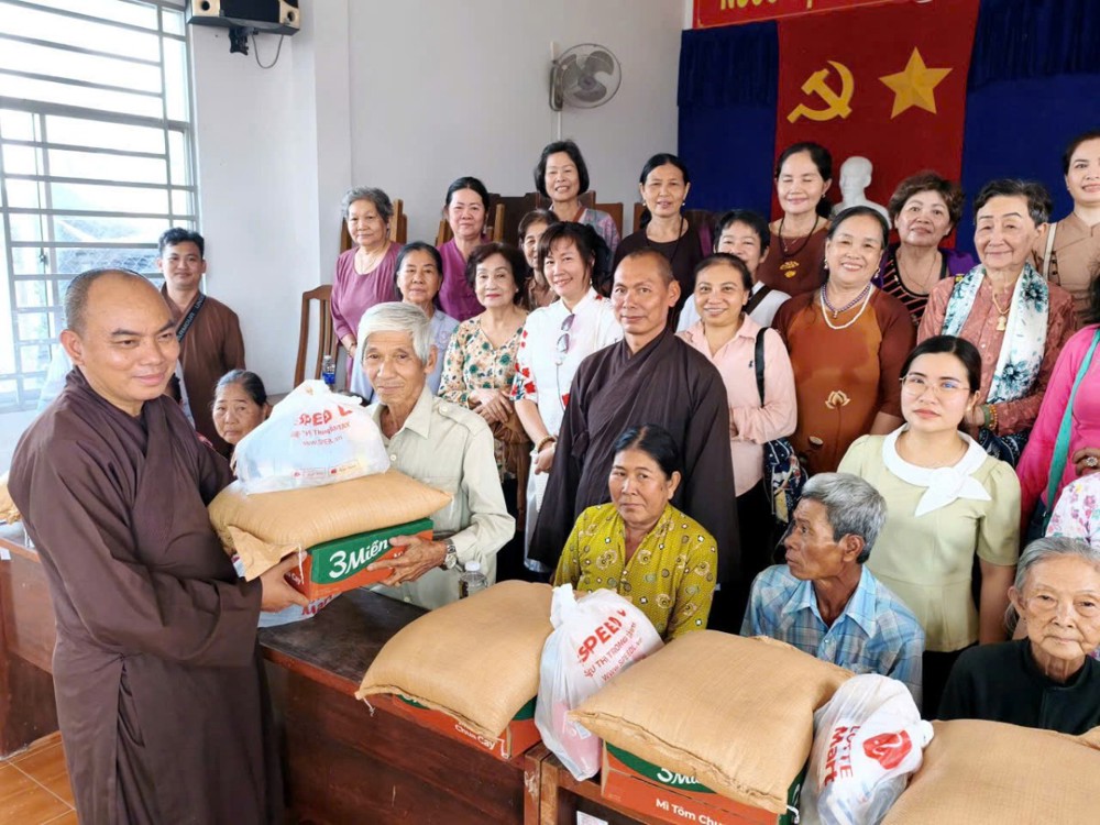 Đoàn từ thiện do Đại đức Thích Giác Tiến – tri sự chùa Huyền Trang – làm trưởng đoàn, cùng chư Tăng và đông đảo Phật tử tham gia. Trong chương trình, đoàn đã trao tặng nhiều phần quà thiết thực như gạo, mì và các nhu yếu phẩm, góp phần hỗ trợ bà con vượt qua khó khăn trong cuộc sống.